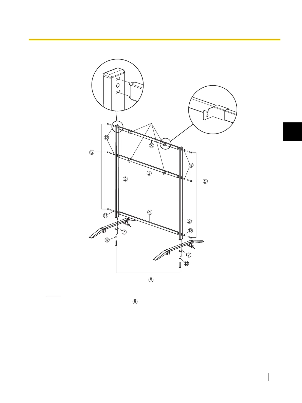 Do not over-tighten the screw ( ). (Doing so can warp the support beams.)