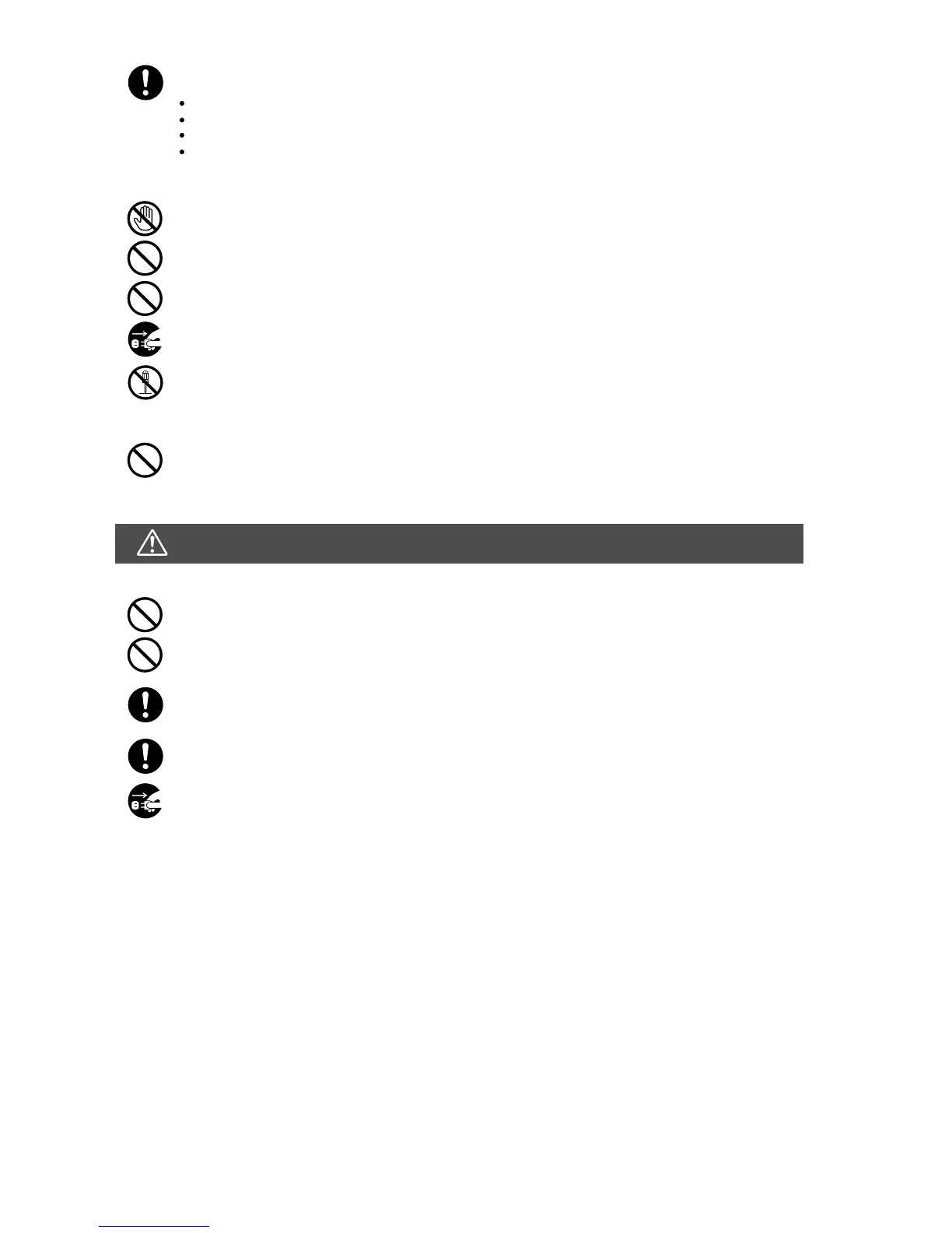 Do not place any metal parts such as staples or clips on the machine. If metal and flammable parts get into the