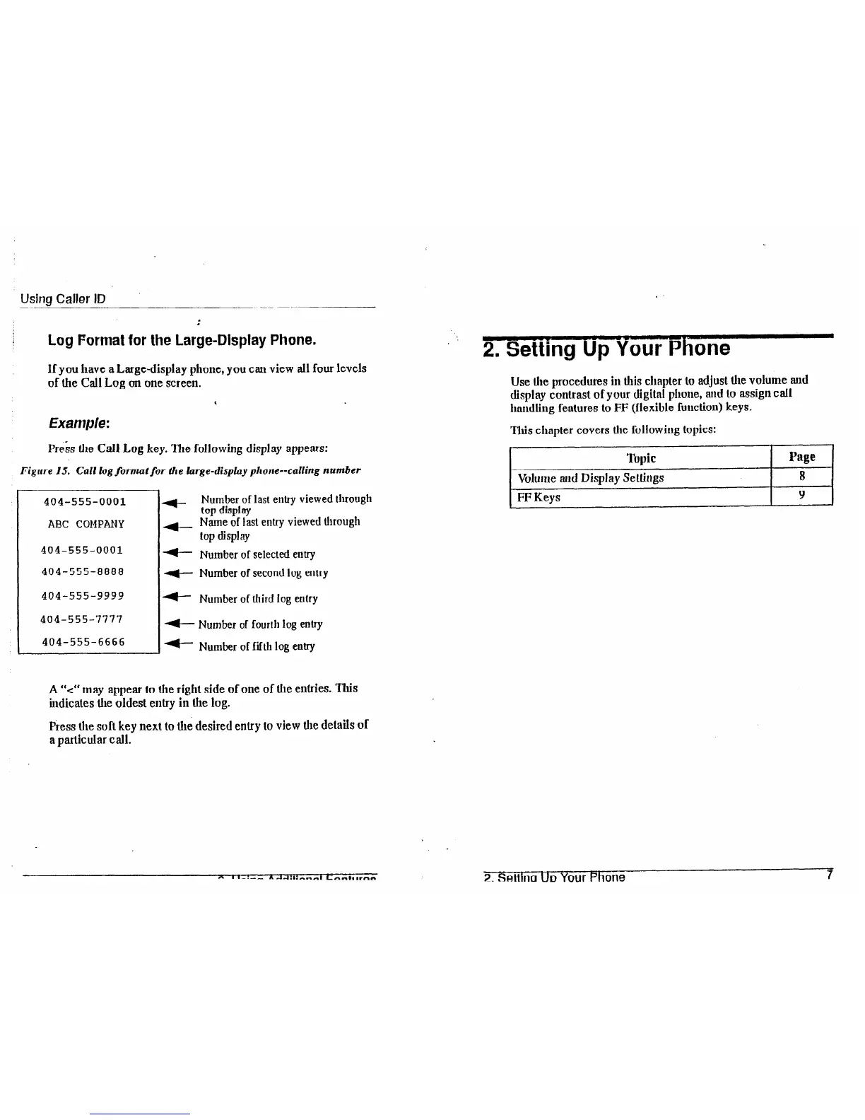Figure 15. Call logfonnat for the large-display phone--calling number