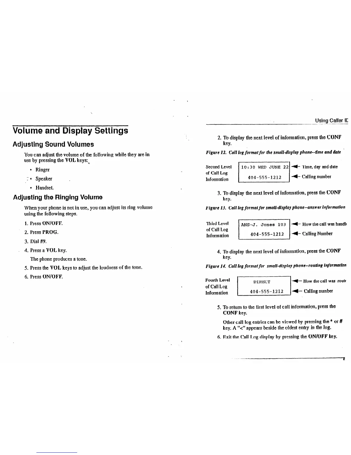 Call Log display by pressing the ON/OFF key.