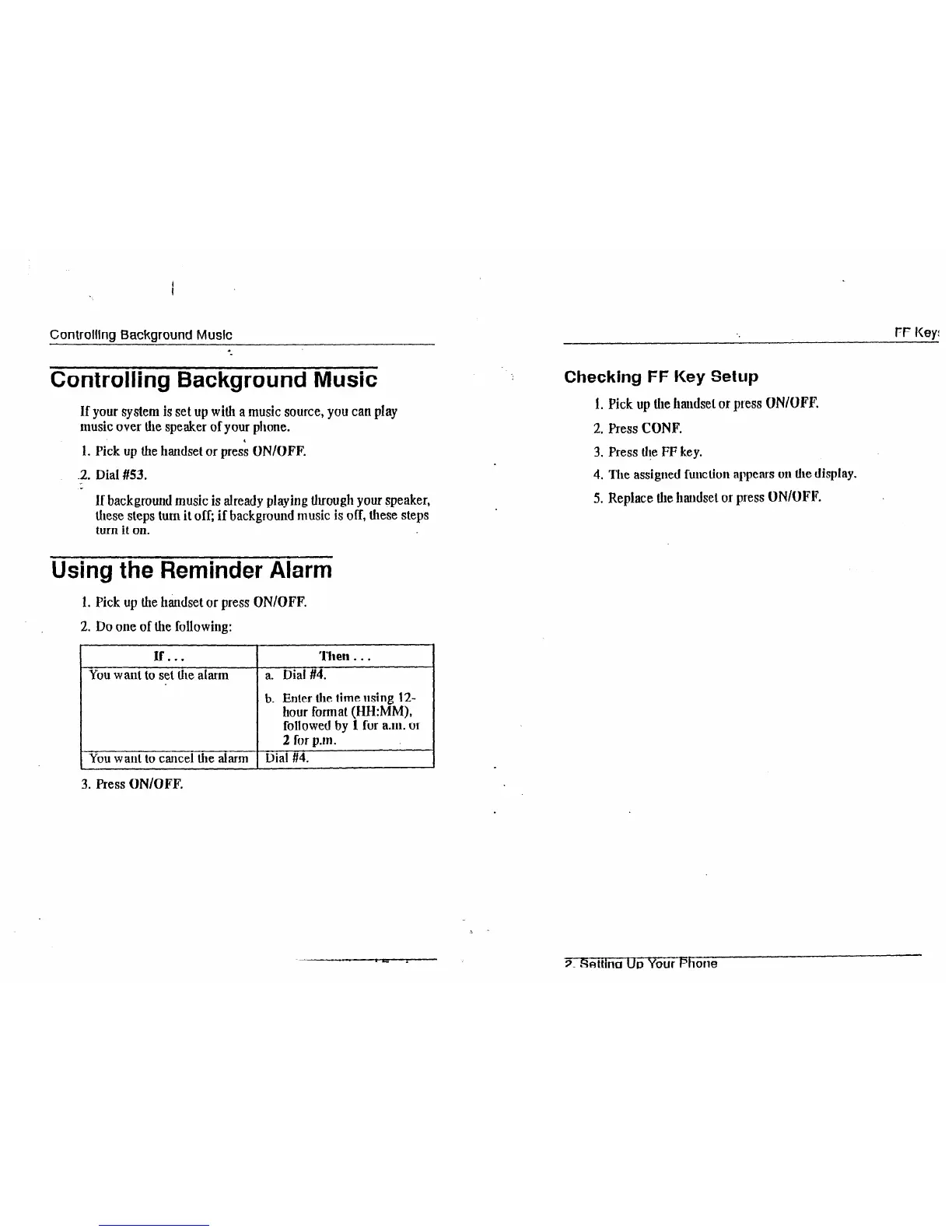 1. Pick up the handset or pres’s ON/OFF.