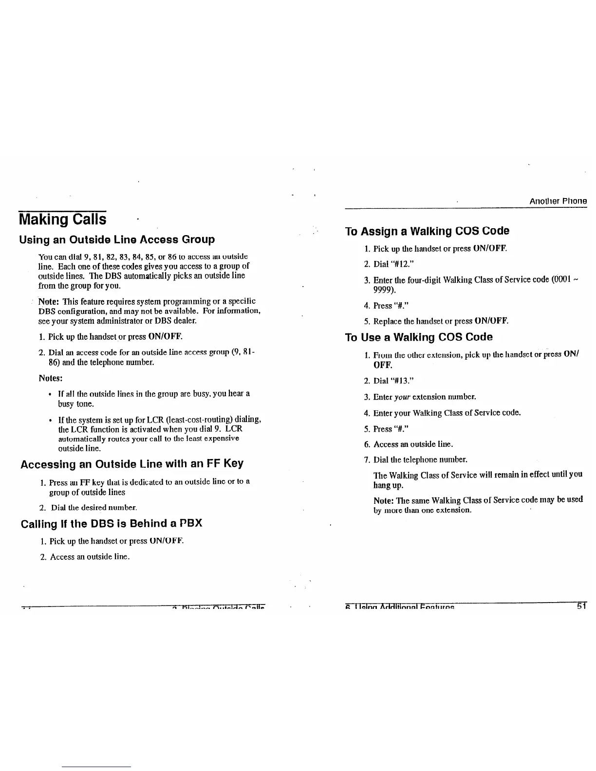 outside lines. The DBS automatically picks an outside line