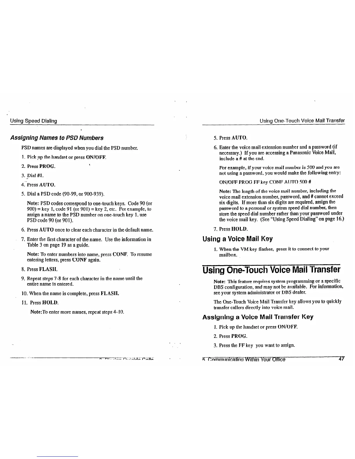 necessary.) If you are accessing a Panasonic Voice Mail,