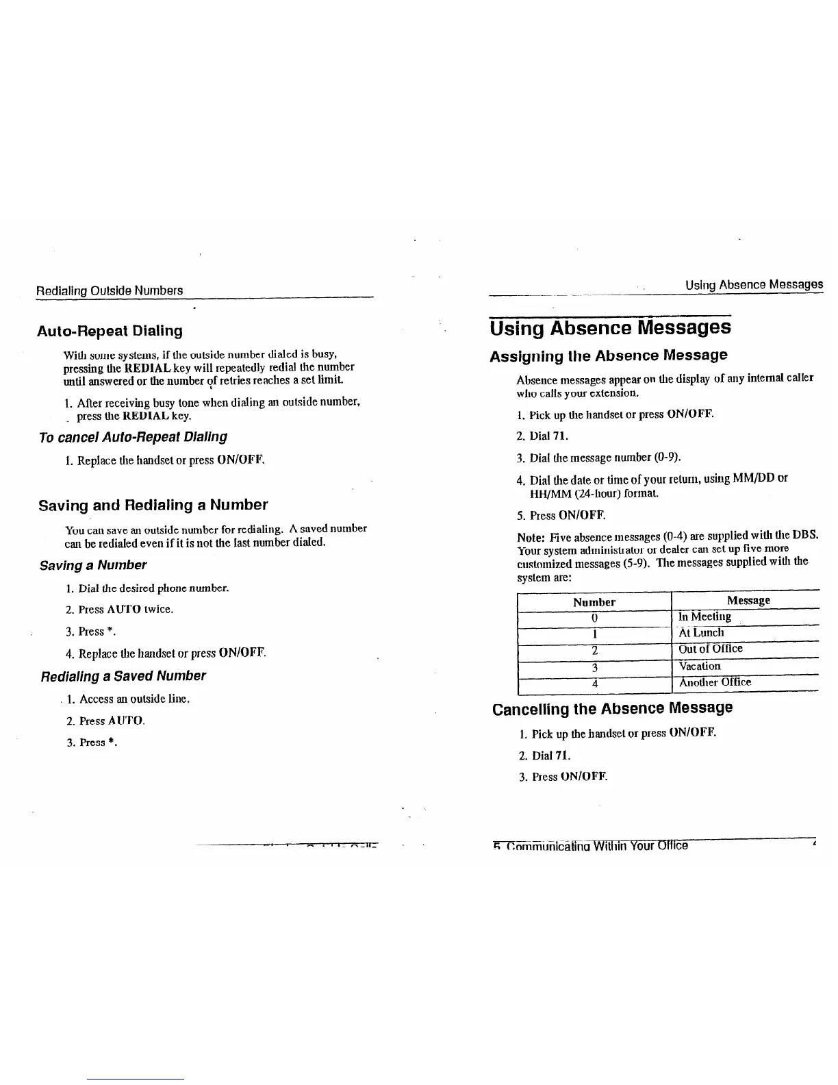 Note: five absence messages (O-4) are supplied with the DBS.