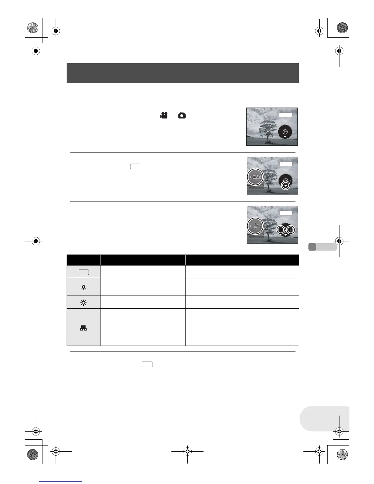 2 Move the joystick down to select the white balance