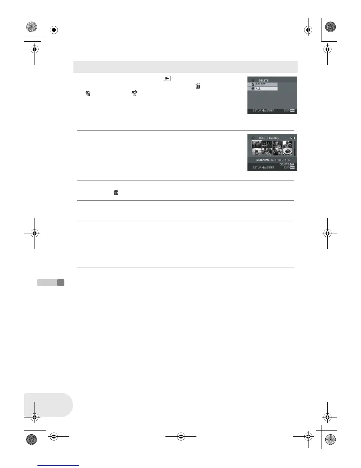 ≥ When [ALL] is selected, the following scenes will be deleted. Proceed to