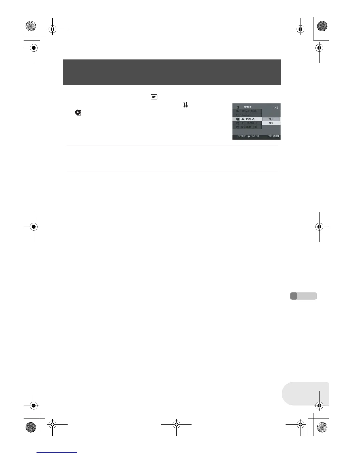 ≥ When un-finalizing is complete, press the MENU button to exit the message screen.