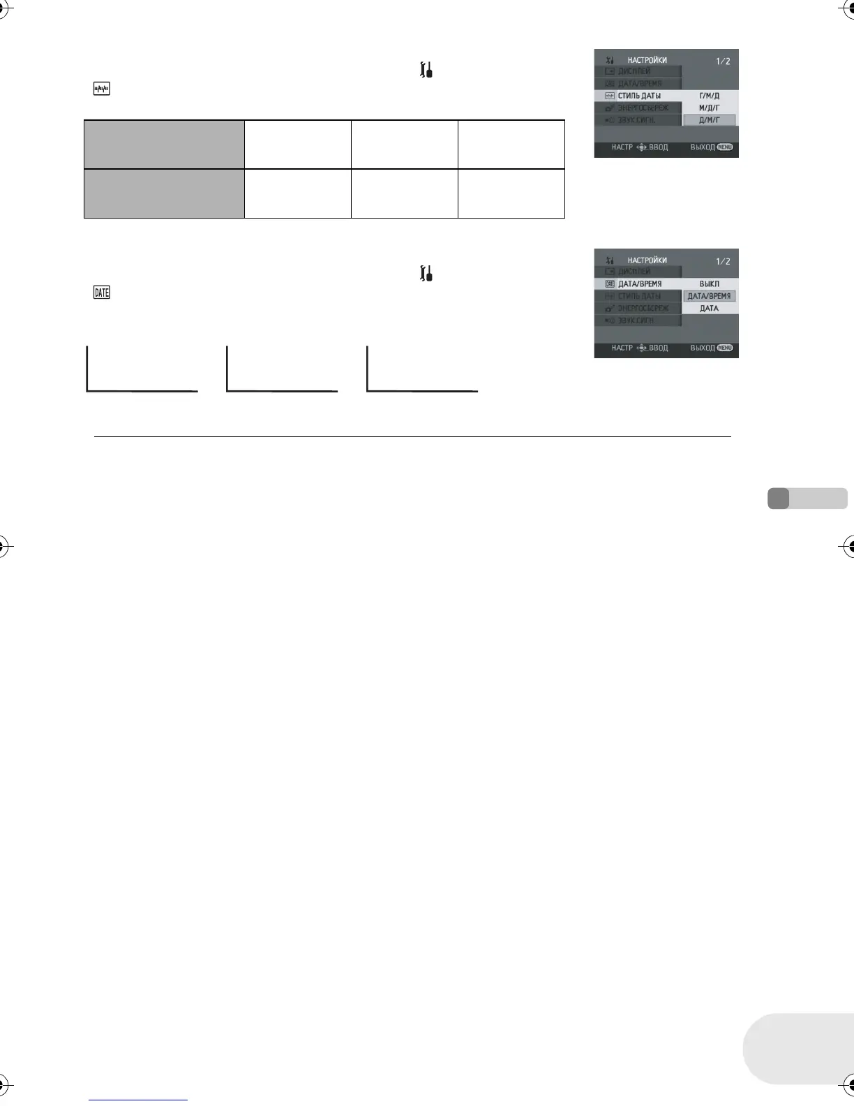 [ ДАТА/ВРЕМЯ] # желаемый стиль и нажмите джойстик.