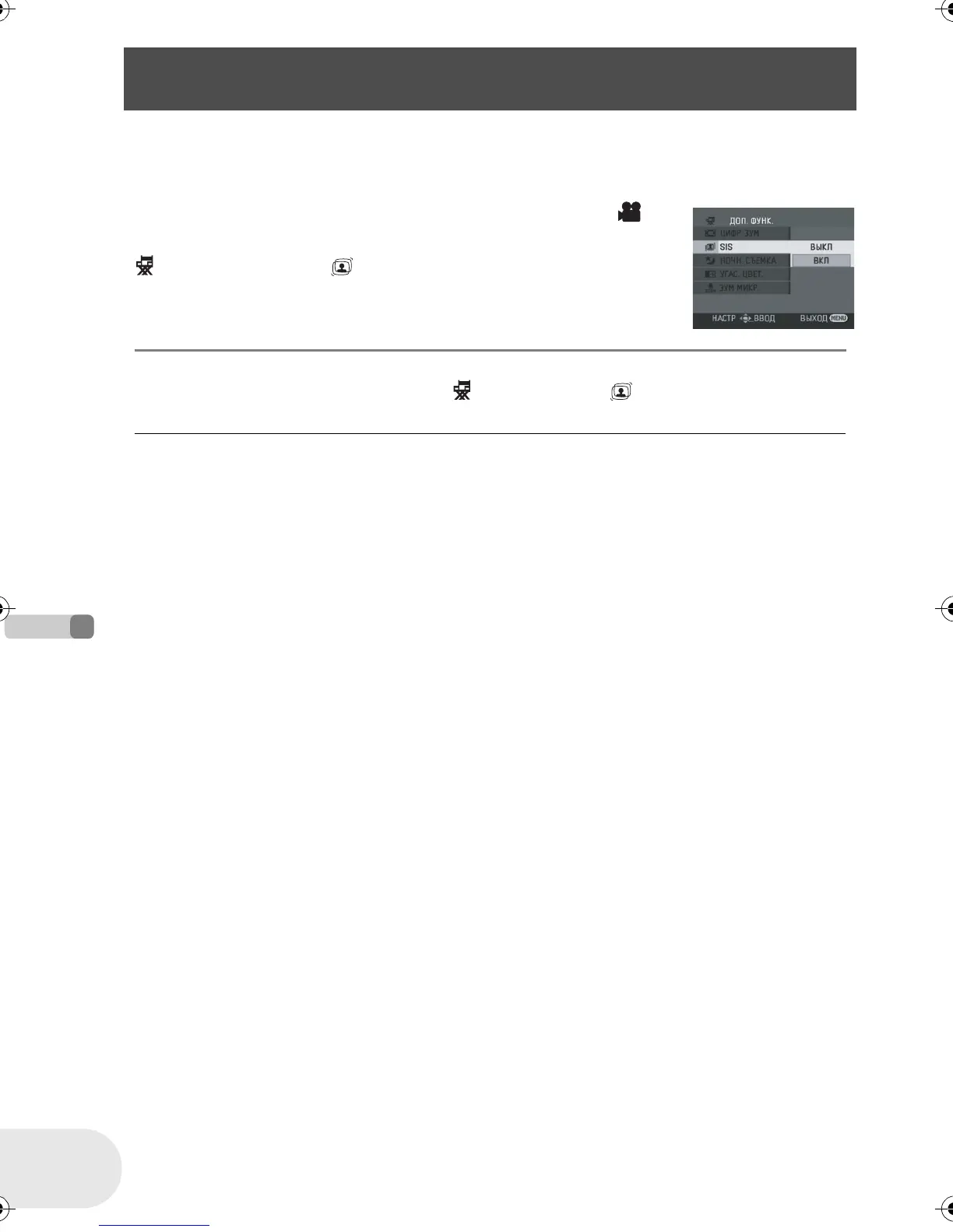 Нажмите кнопку MENU, затем выберите [ ДОП. ФУНК.] # [ SIS] # [ВЫКЛ] и нажмите