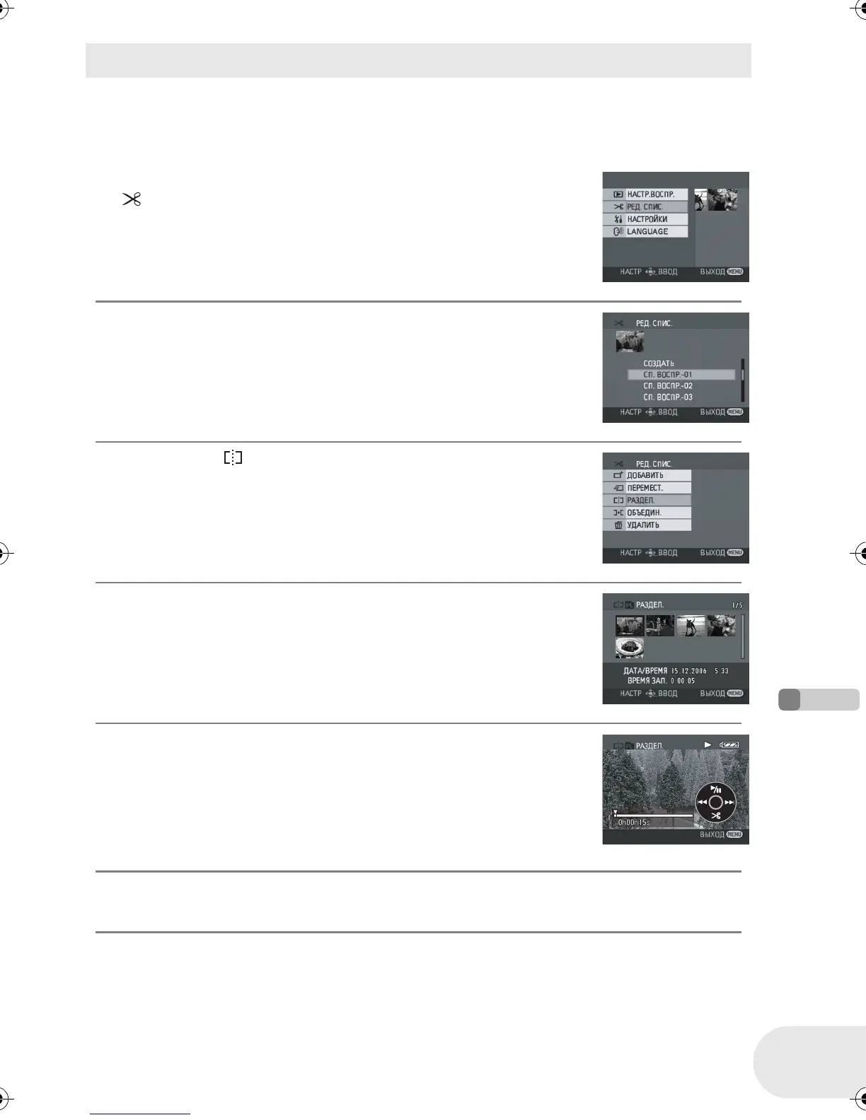 ≥ Разделение сцен в списке воспроизведения не оказывает влияние на оригинальные сцены.