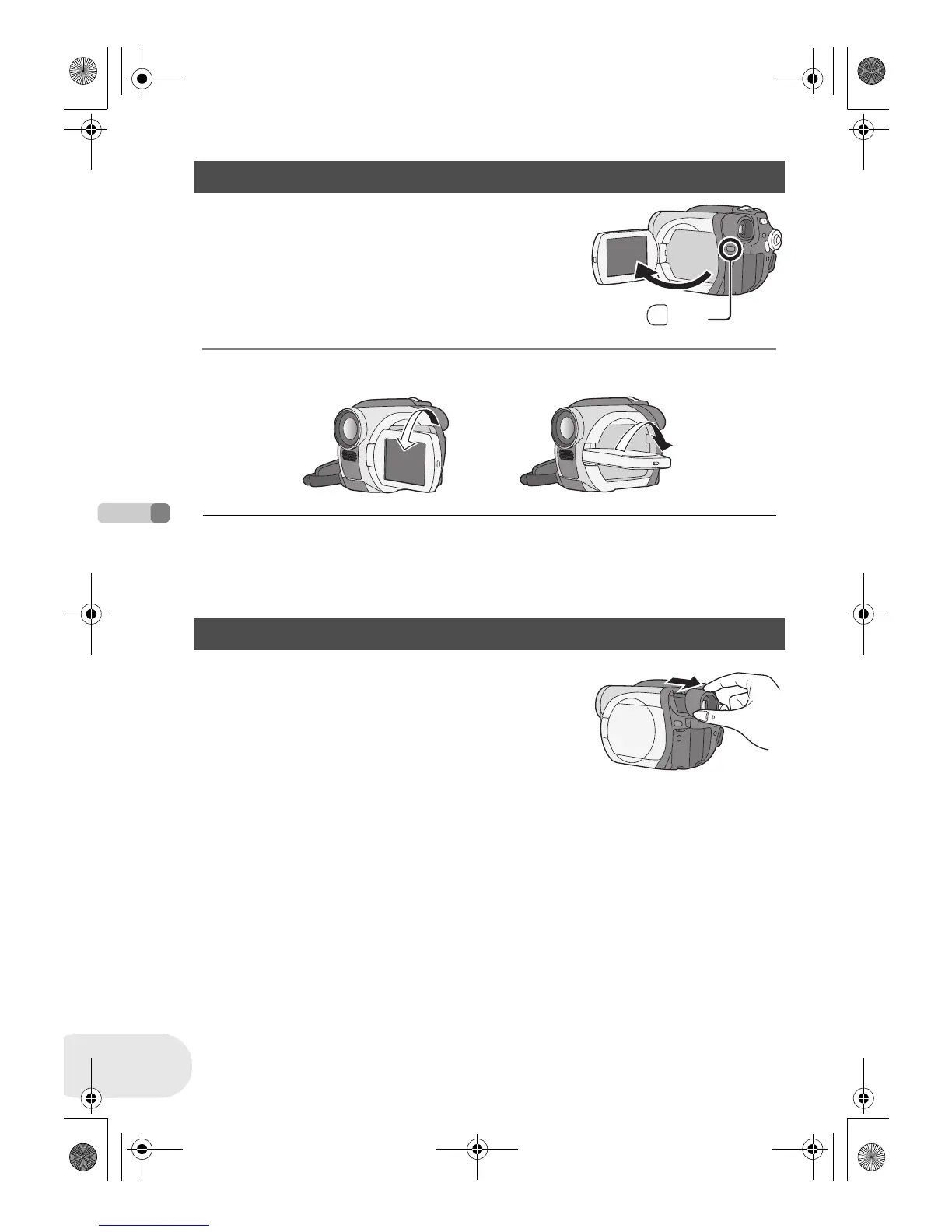 1 Press the PUSH OPEN button. The LCD