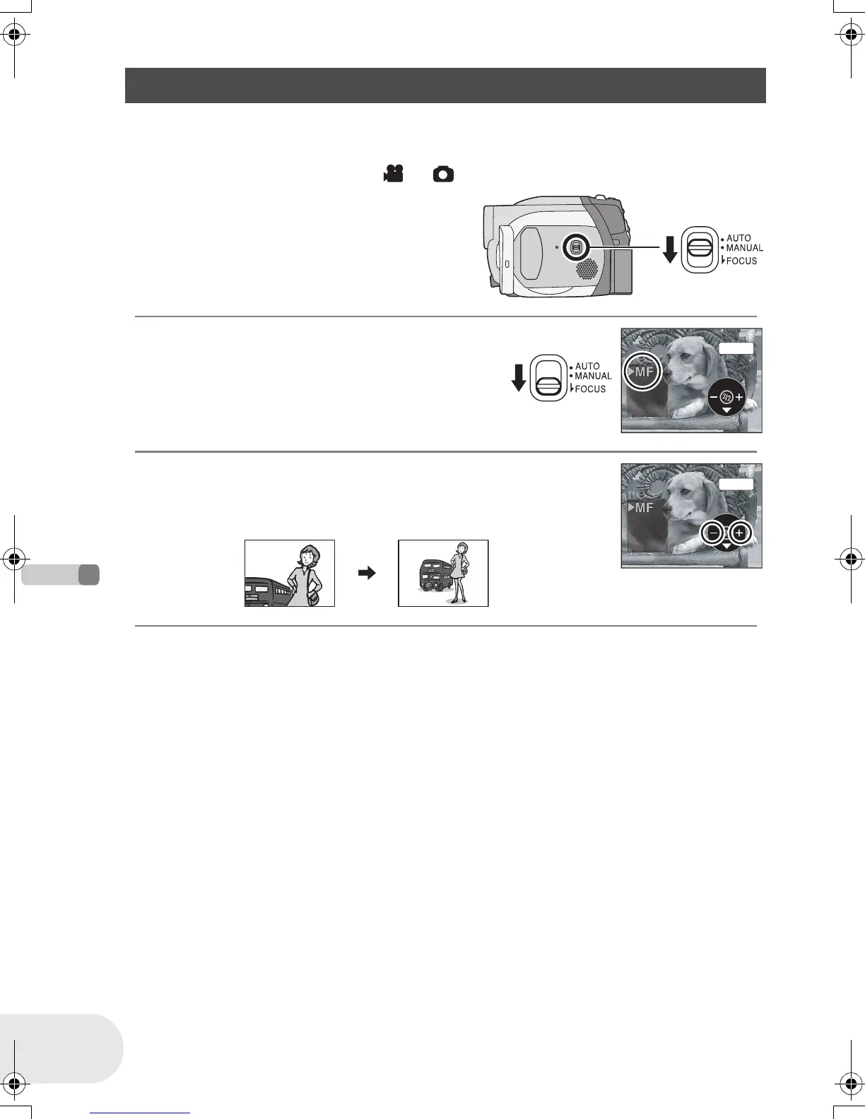 ≥ You can also restore the auto focusing by setting the AUTO/MANUAL/FOCUS switch to AUTO.