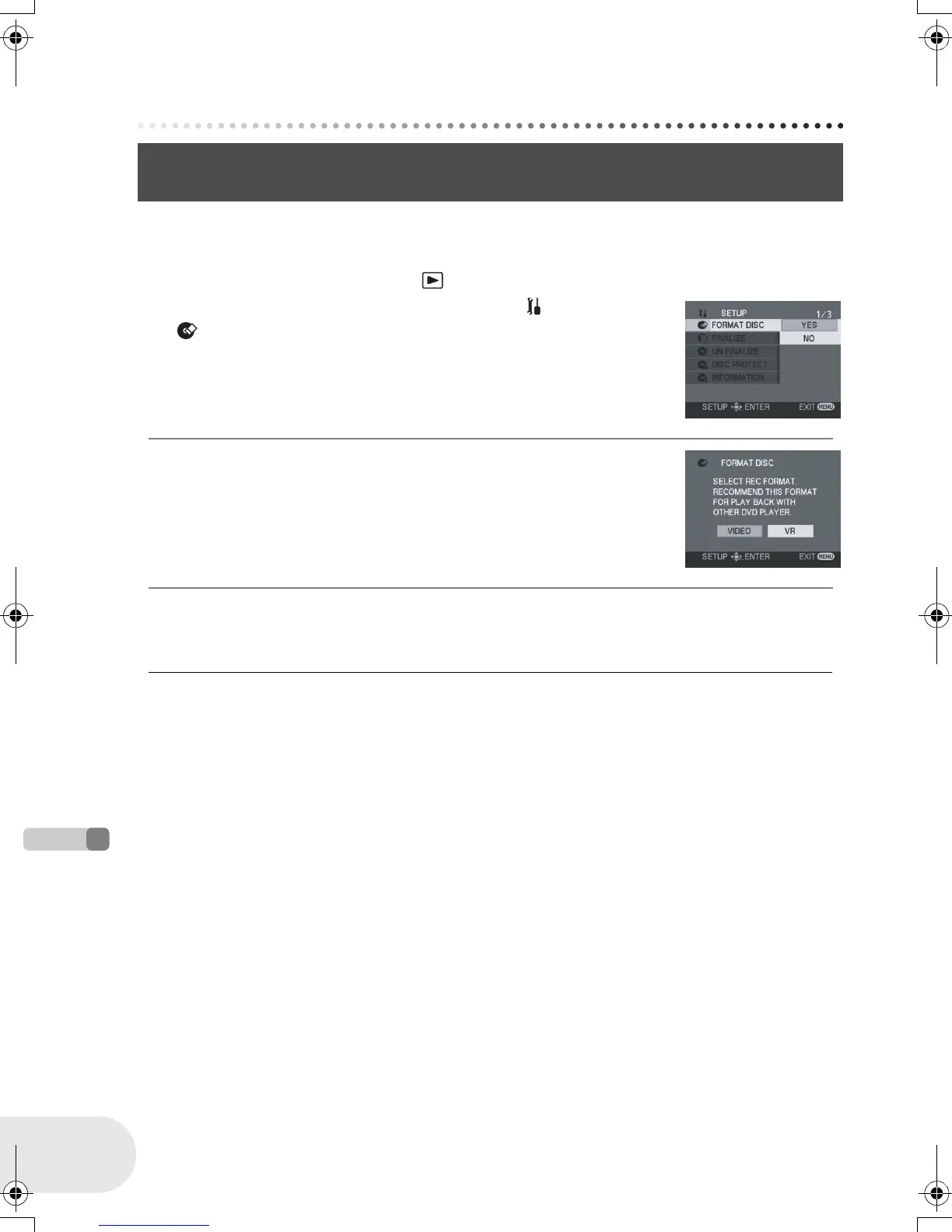 ≥ When formatting a DVD-RAM, skip to step 3.