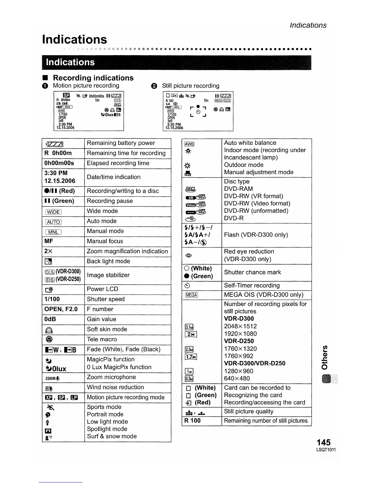 Panasonic vdr-d300 - Indications