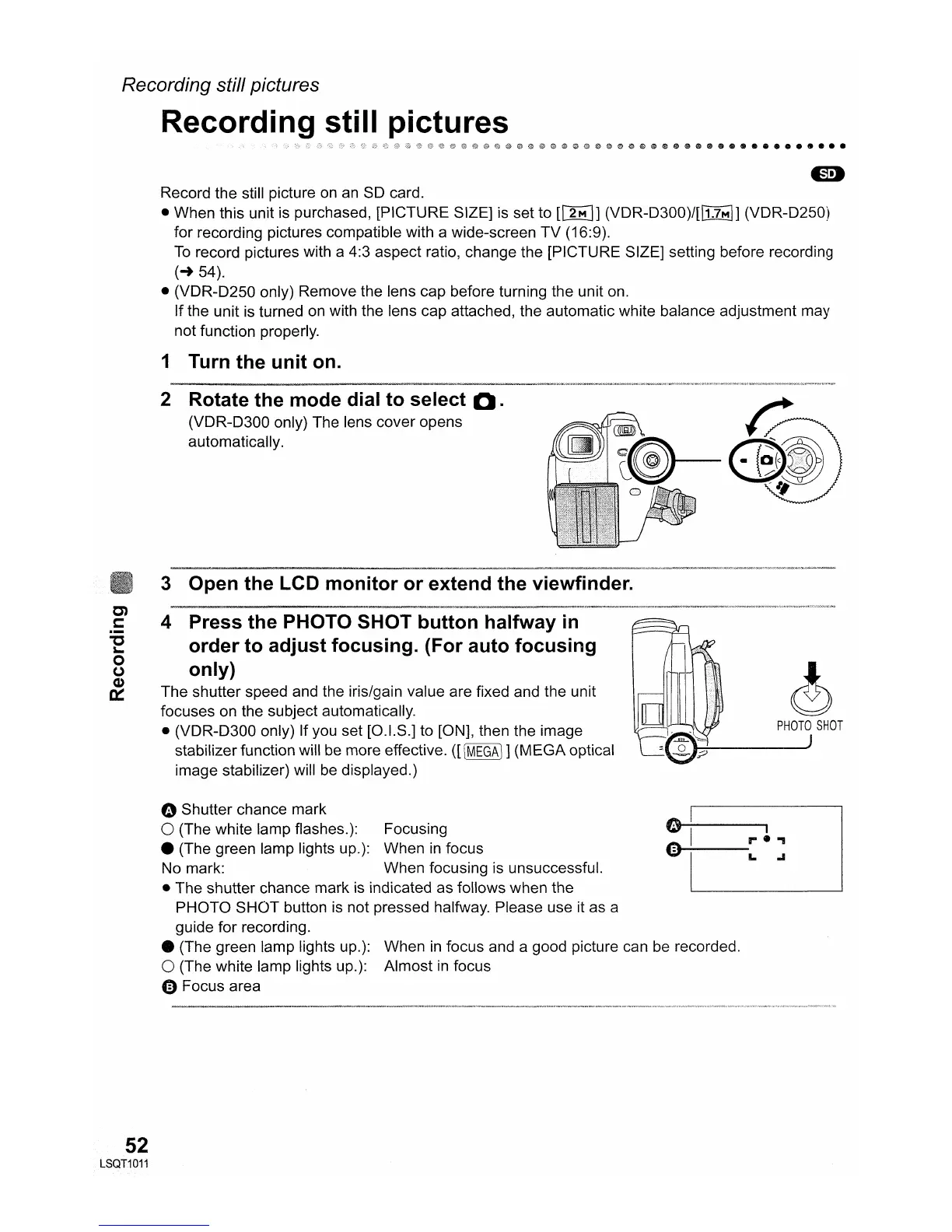 Panasonic vdr-d300 - Recording still pictures