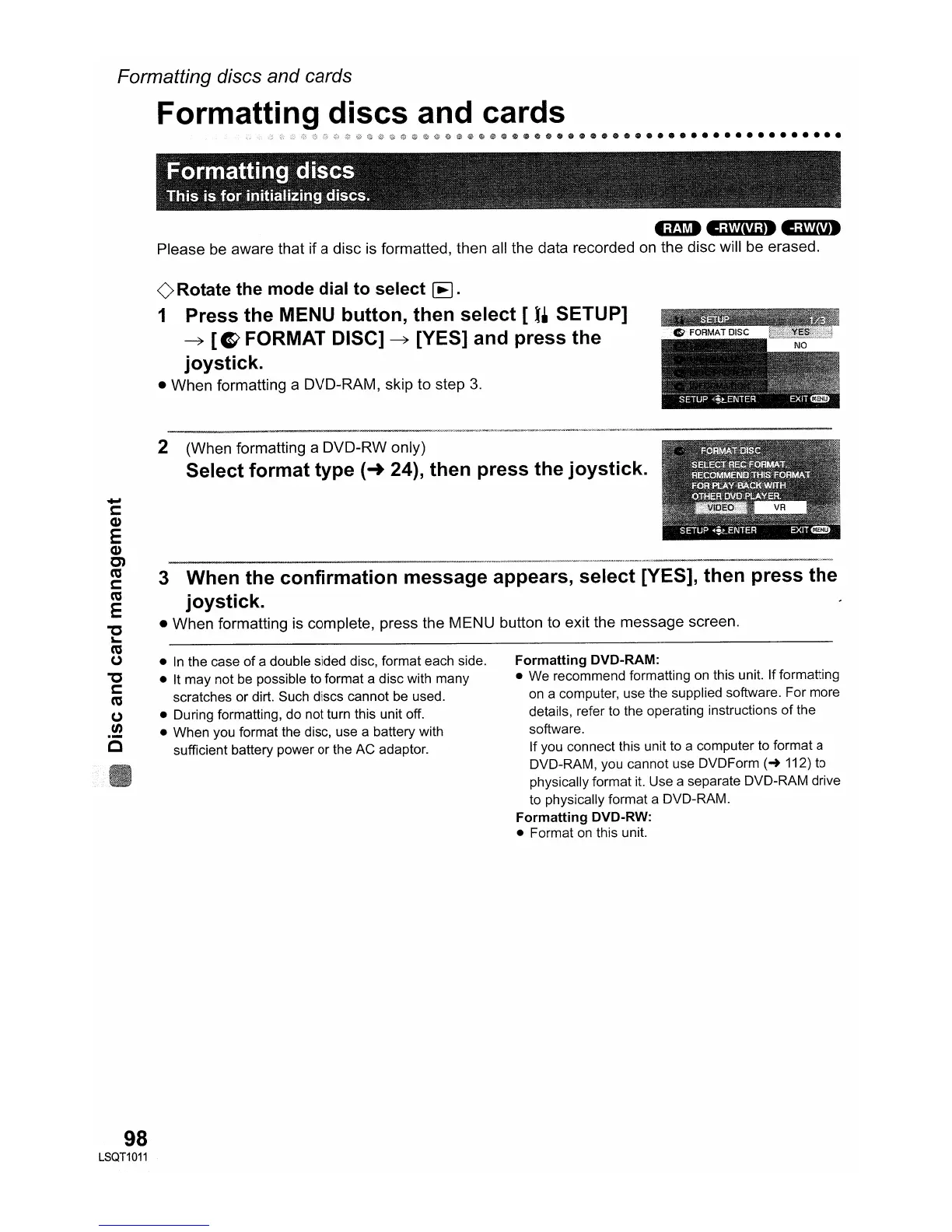 Panasonic vdr-d300 - Disc and card management; Formatting discs and cards