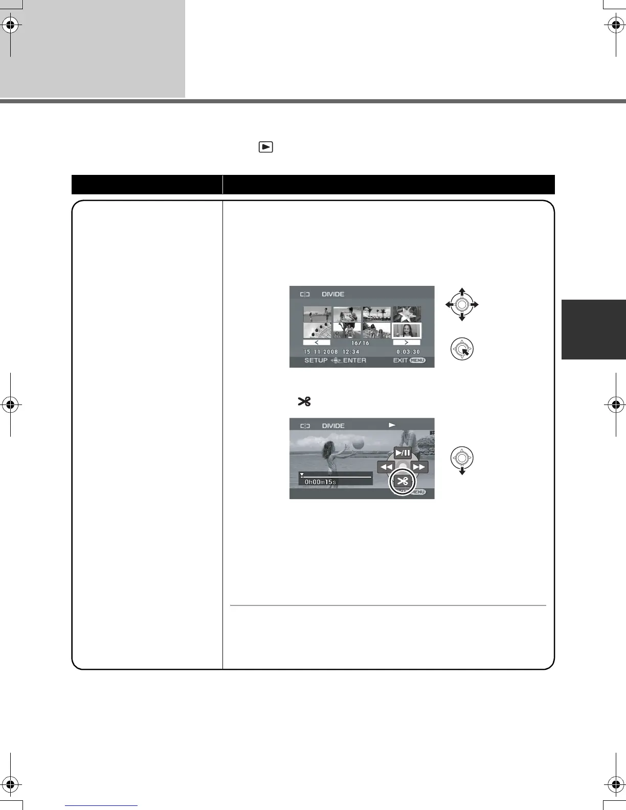 2 Select the scene to be divided, then press the