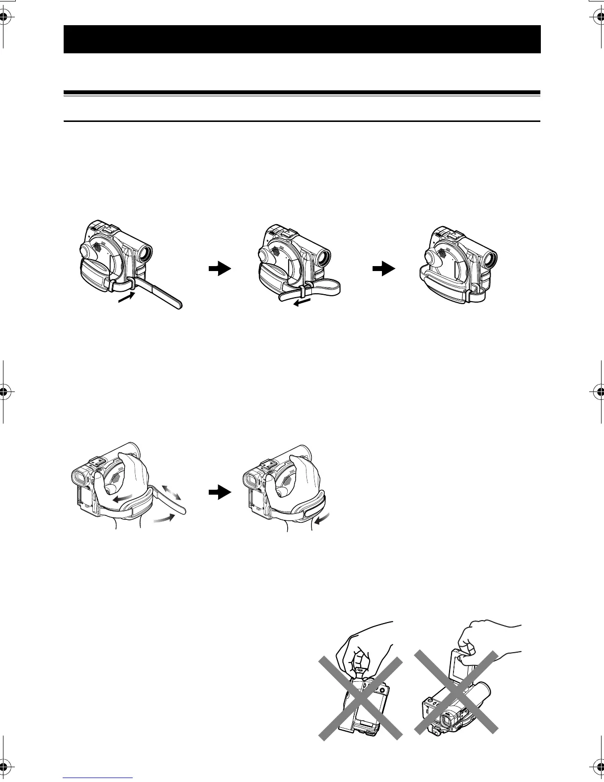 Adjust the length of grip belt so that the DVD Palmcorder is stable when you press the REC button with