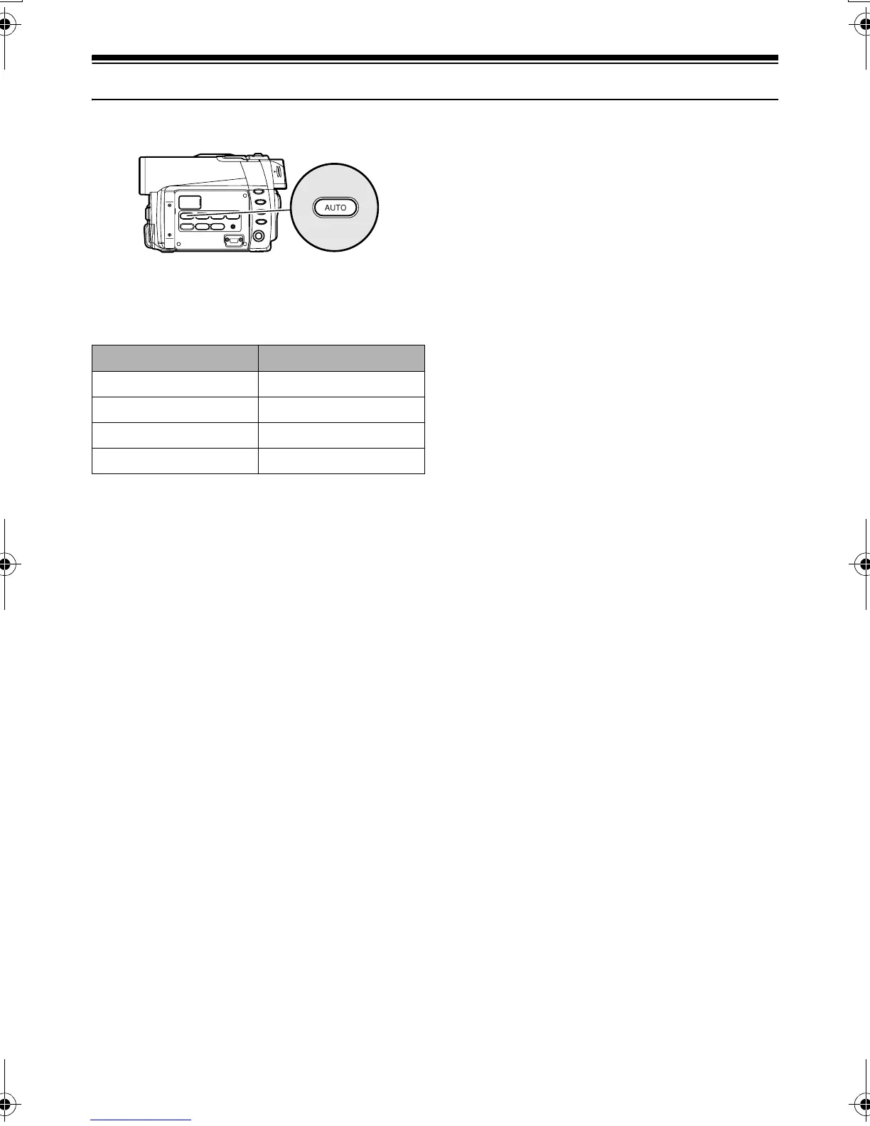 Pressing the AUTO button will fully automate the camera functions.