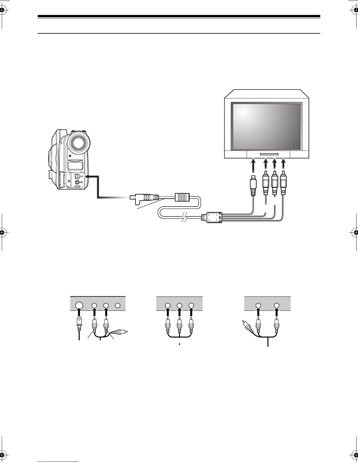 Use the provided AV/S input/output cable to connect the DVD Palmcorder to a TV as follows: