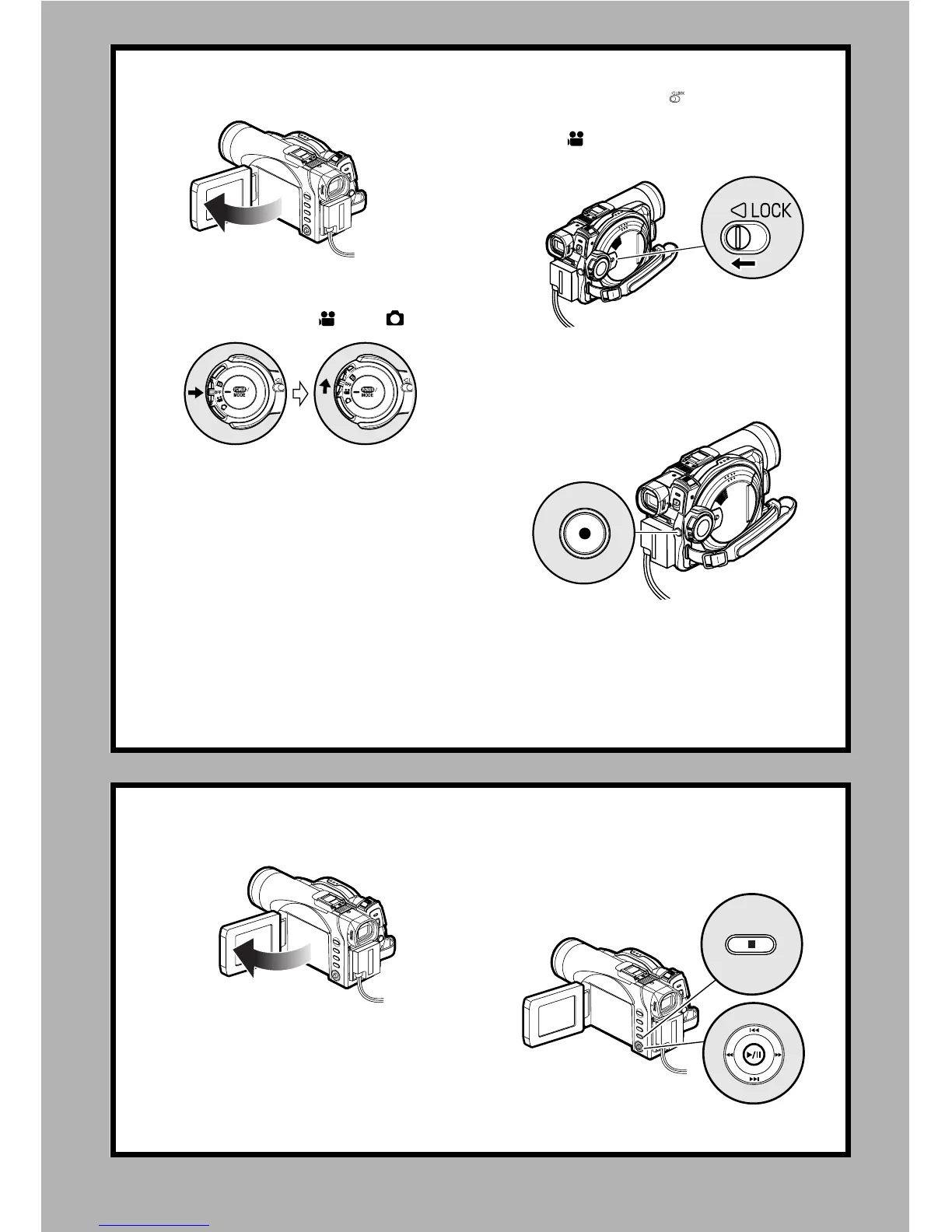 1. Open the LCD monitor (See page 38). 2. After recording is finished, press the A button.