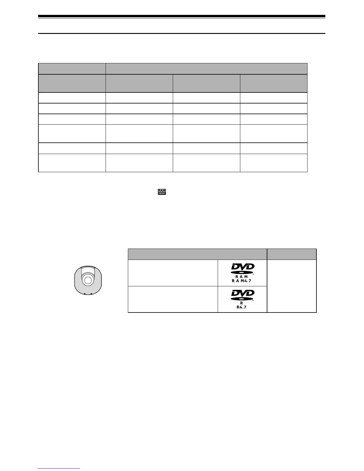 Function DVD-RAM disc DVD-R disc