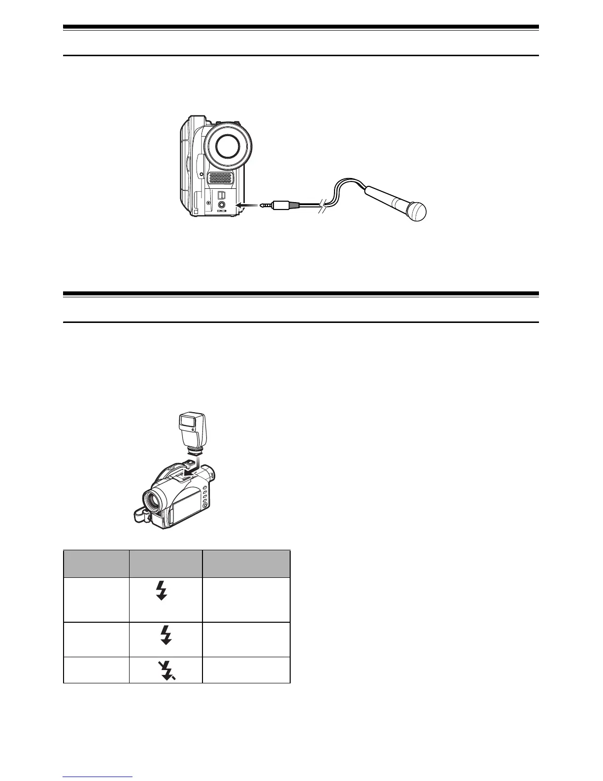 Connect external microphone (optional-user provided) to the external microphone jack of this DVD Video Camera.