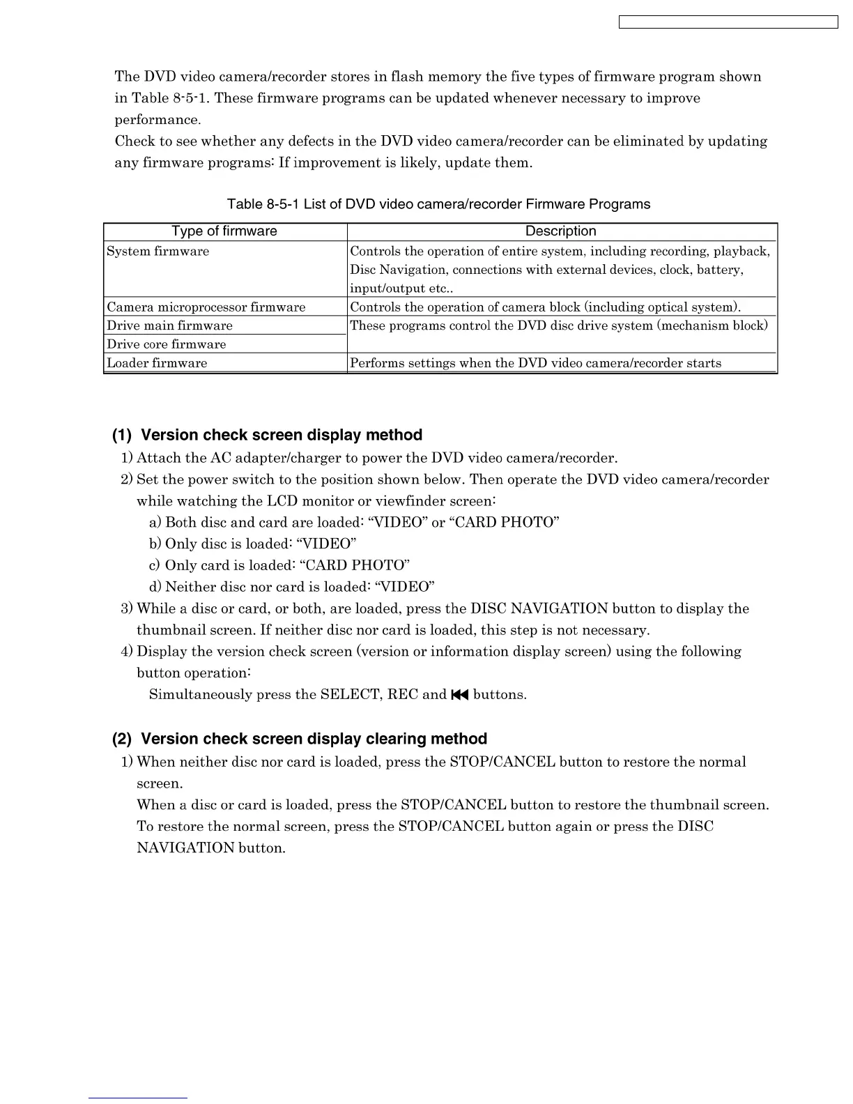 Panasonic VDR-M95PP - Checking Versions of Firmware and Updating