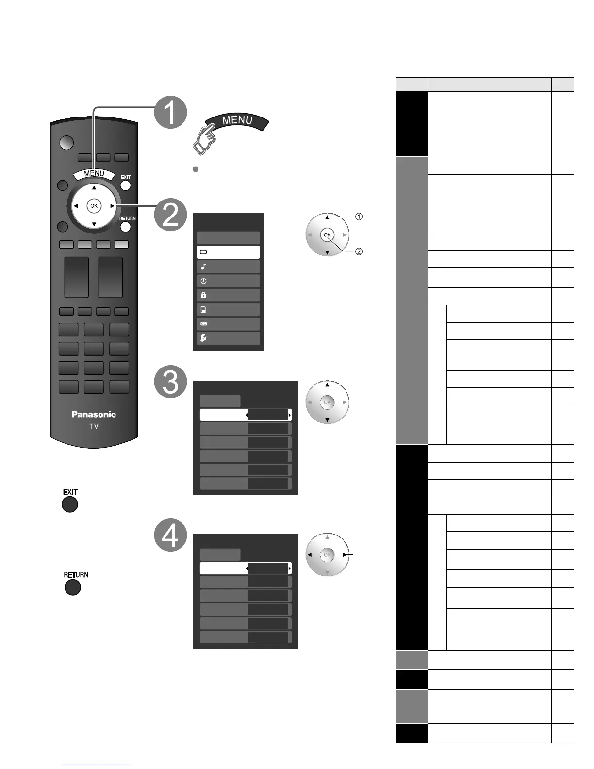 Various menus allow you to make settings for the picture, sound, and