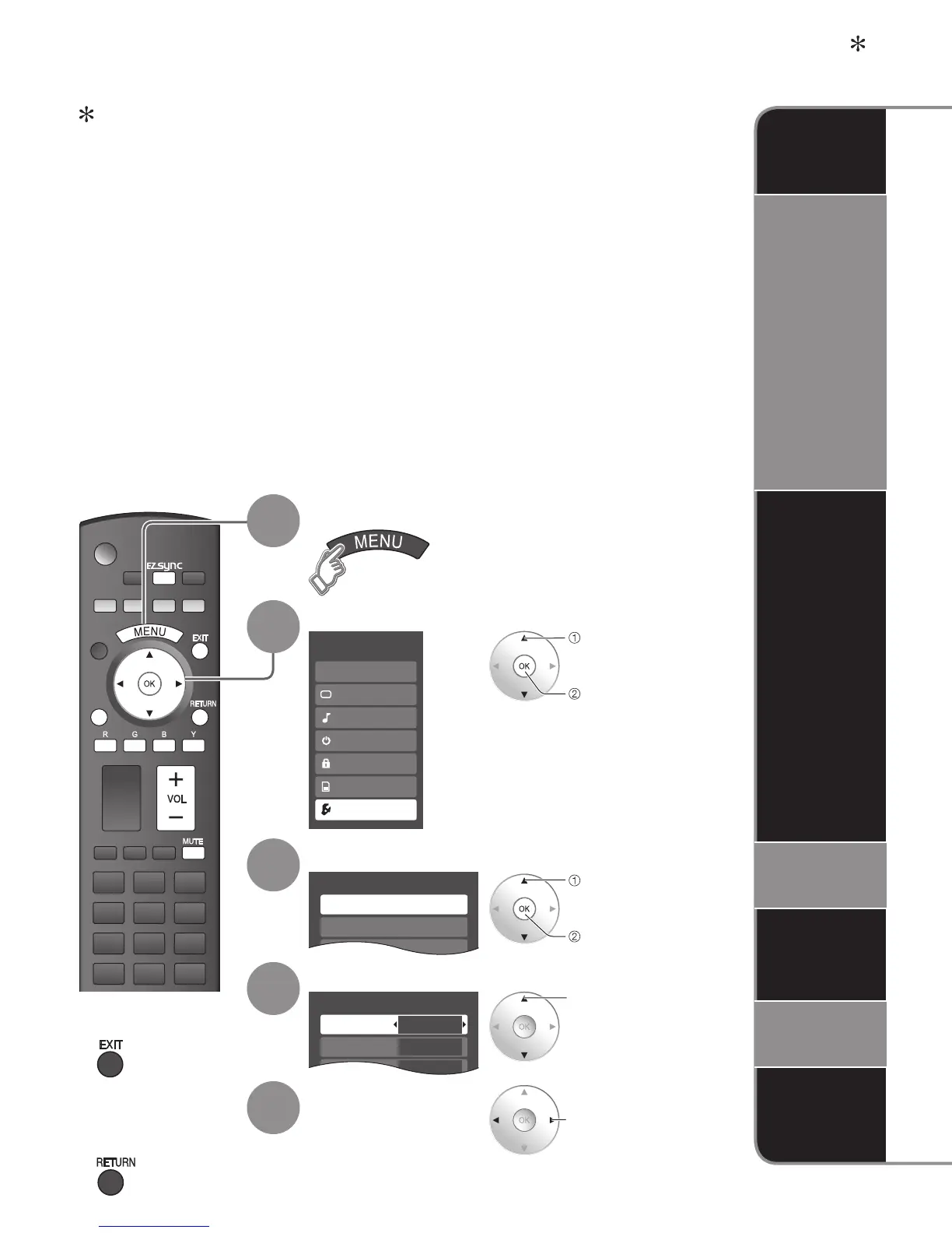 If using the DIGA operation, the TV’s input automatically switches to the DIGA and DIGA menu is displayed.