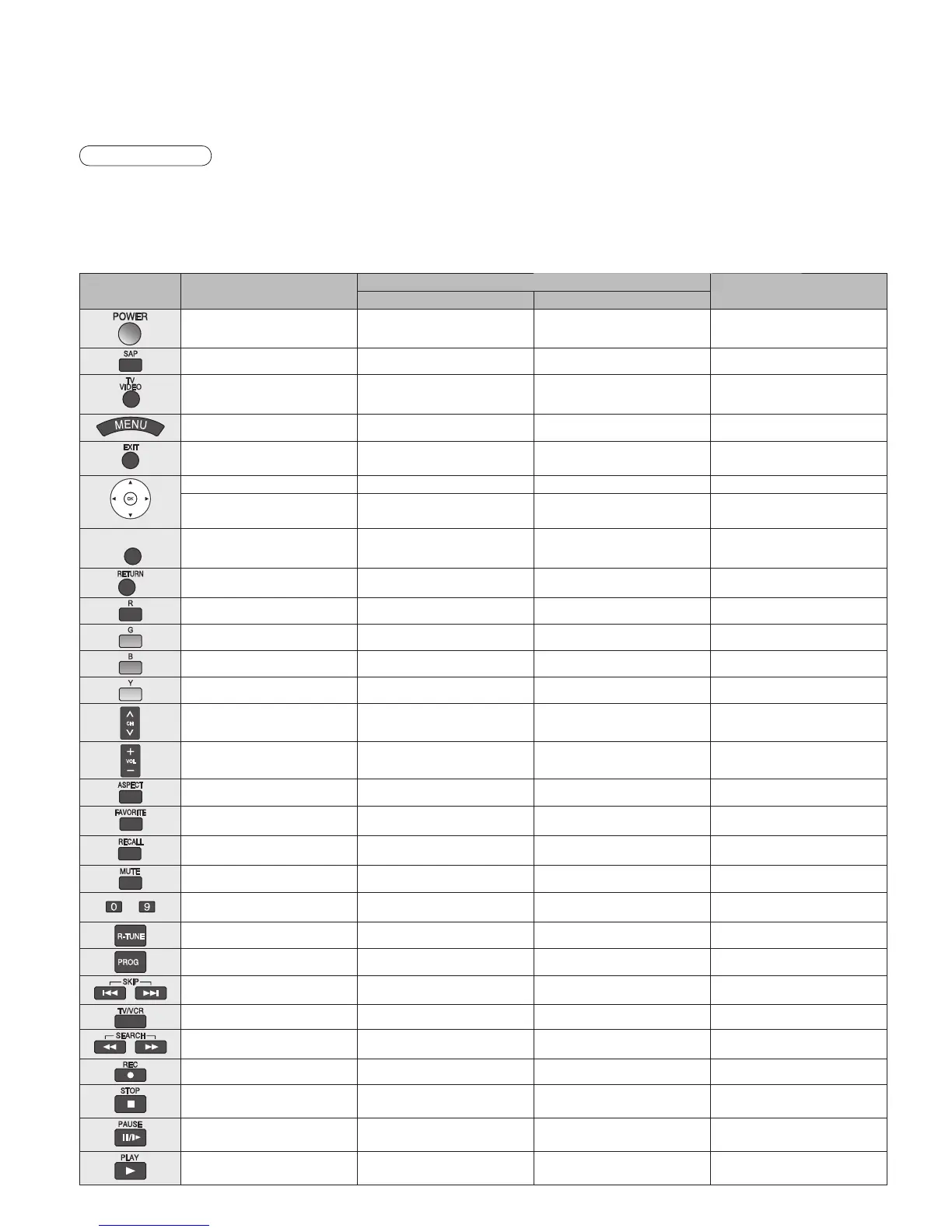 This chart defines which keys are operational after programming (if needed) while in the selected remote control