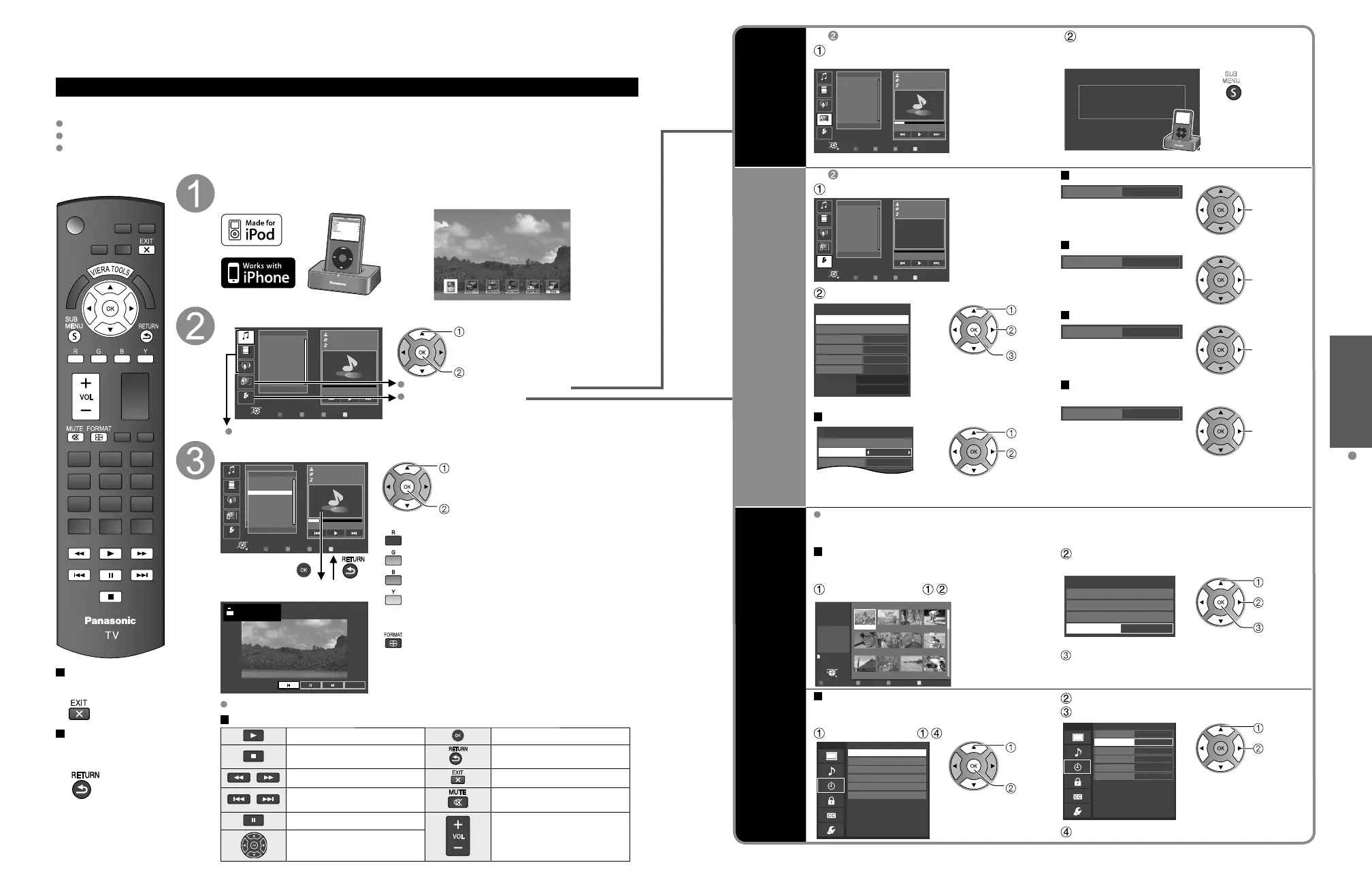 Connect your iPod (not included) firmly Select iPod icon in VIERA TOOLS (p. 17)