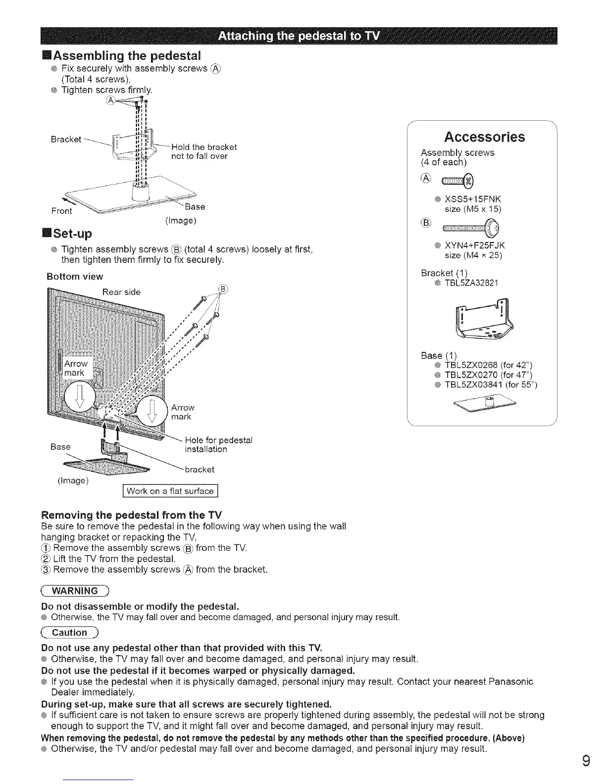 _ if you use the pedestal when it is physically damaged, personal injury may result. Contact your nearest Panasonic
