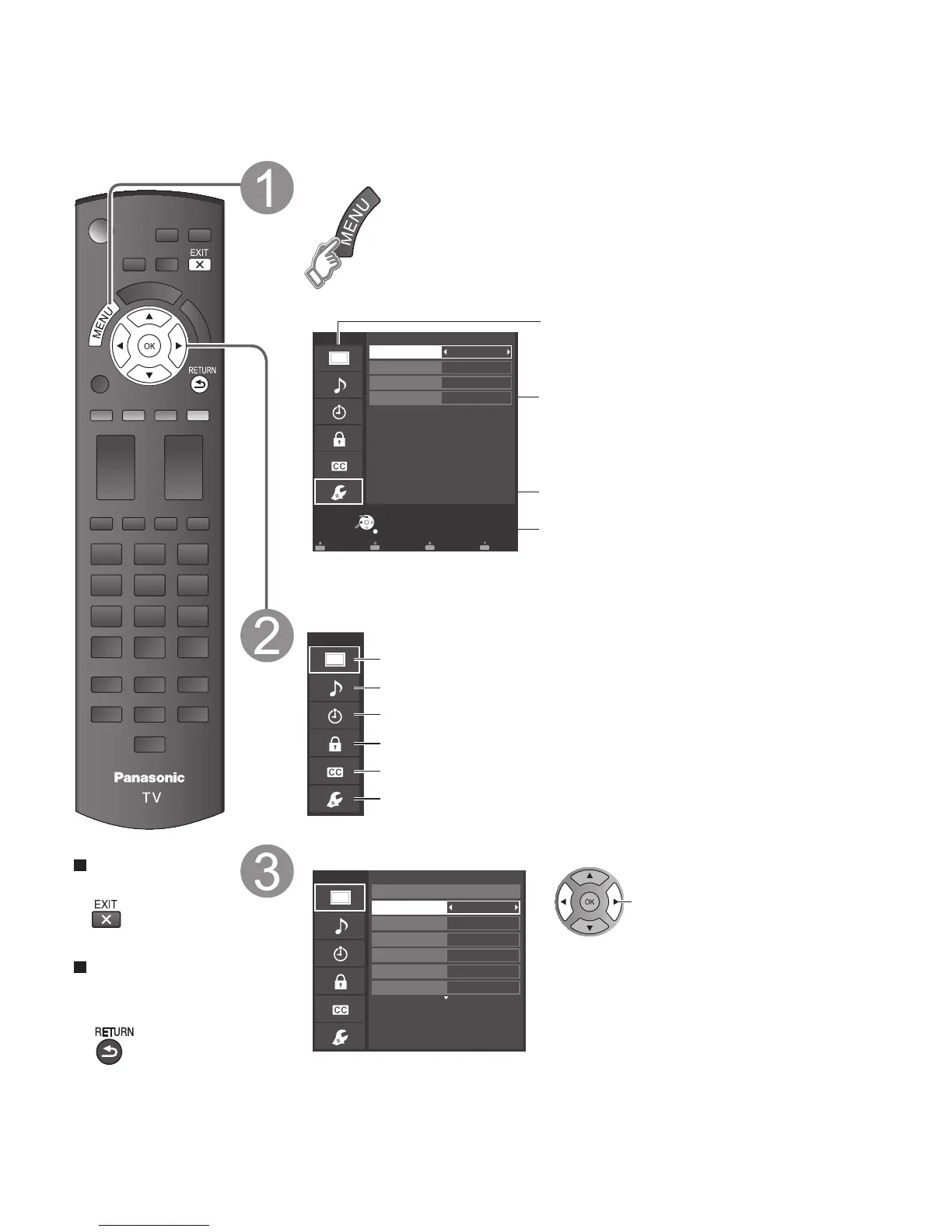 Various menus allow you to set the picture, sound, and other functions so that you can enjoy watching TV