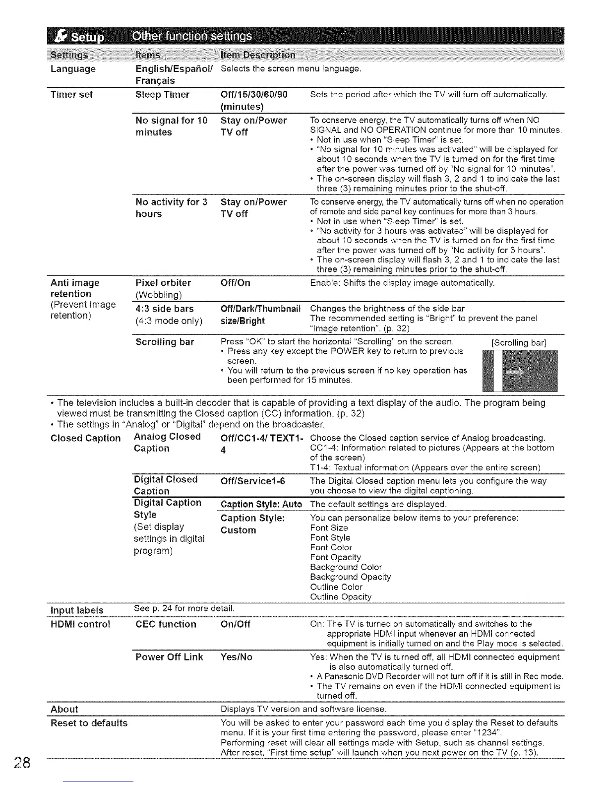 • The television includes a built-in decoder that is capable of providing a text display of the audio. The program being