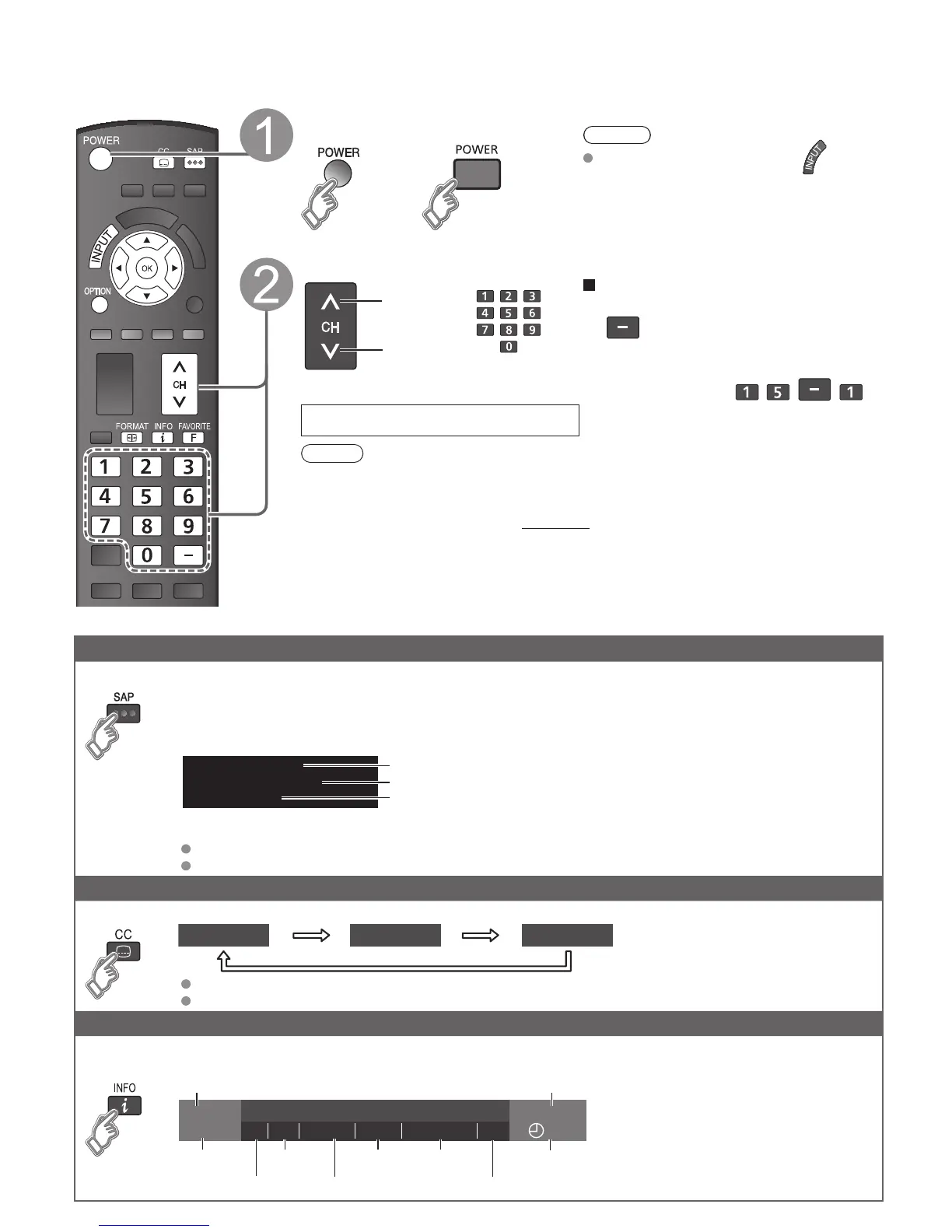 ■Displays TV status information. Also, when watching programs via the Antenna/Cable input,