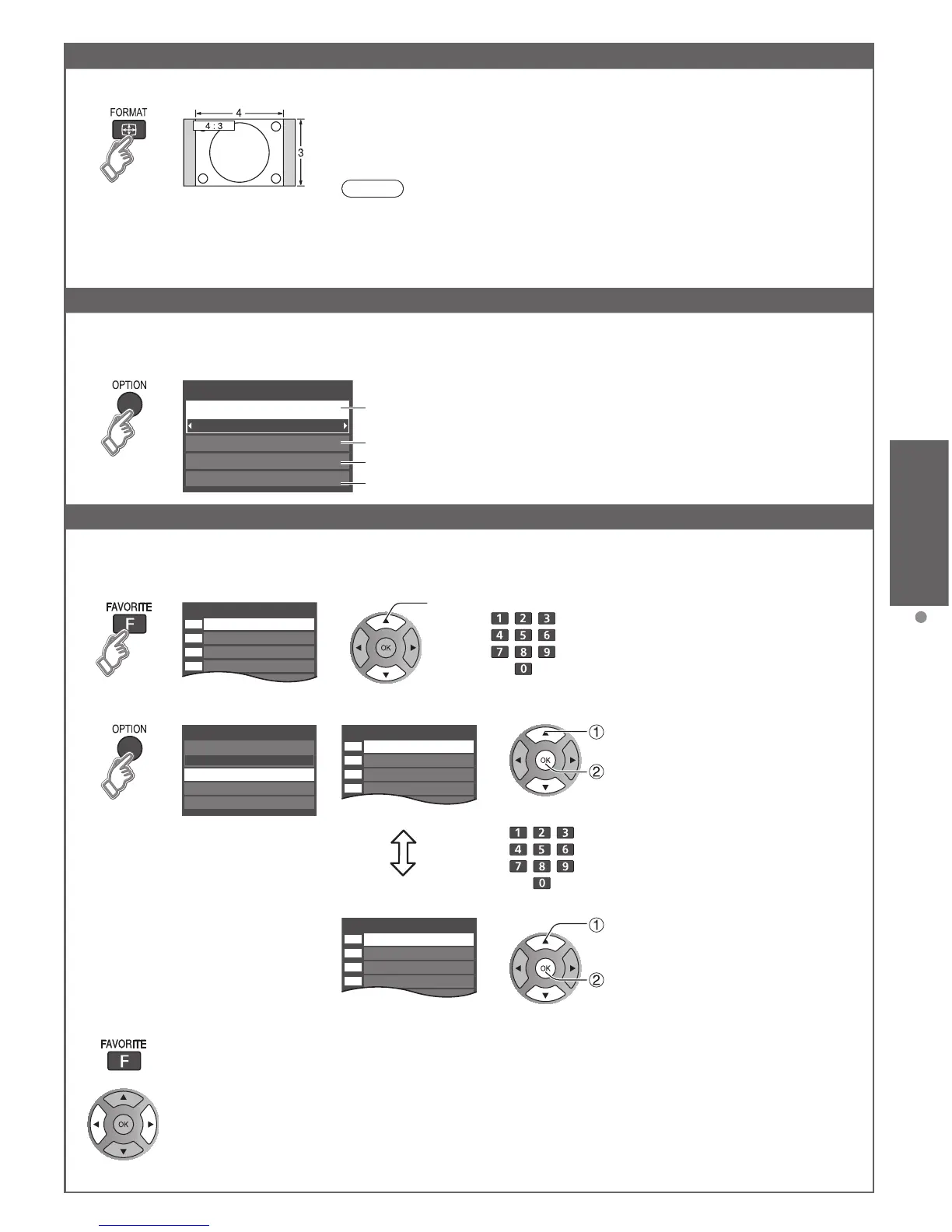 Channel numbers registered in Favorite are displayed on the favorite tune screen. Select the desired broadcast