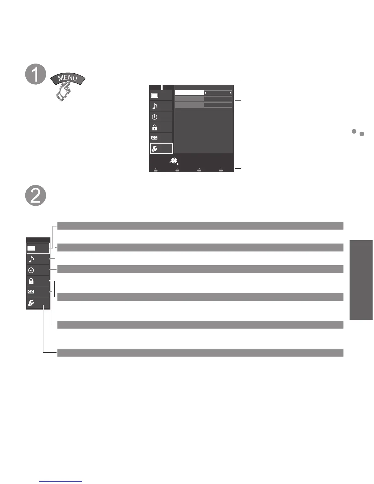 Various menus allow you to set the picture, sound, and other functions so that you can enjoy watching TV