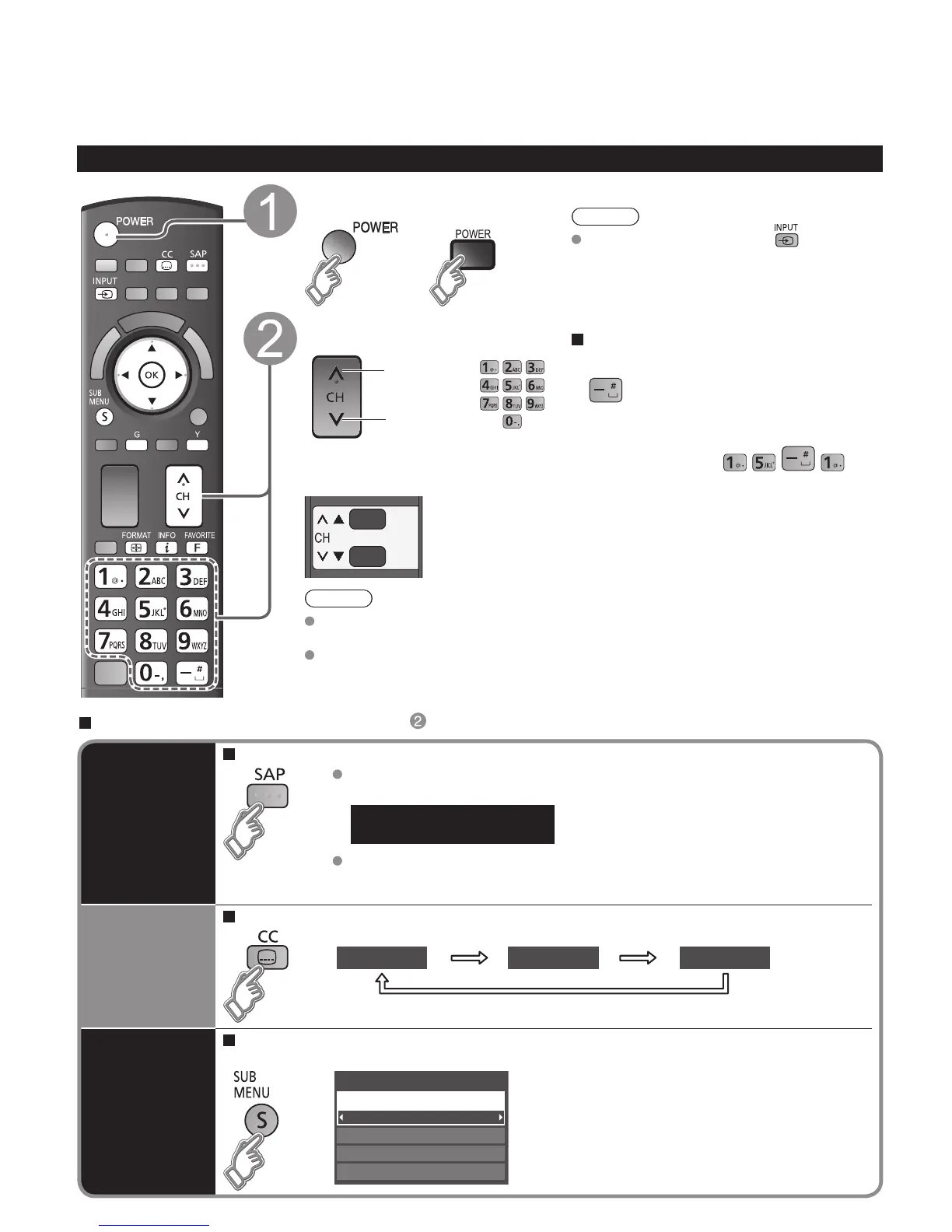 • Each press of SAP will change the Audio mode. (Stereo/SAP/Mono)