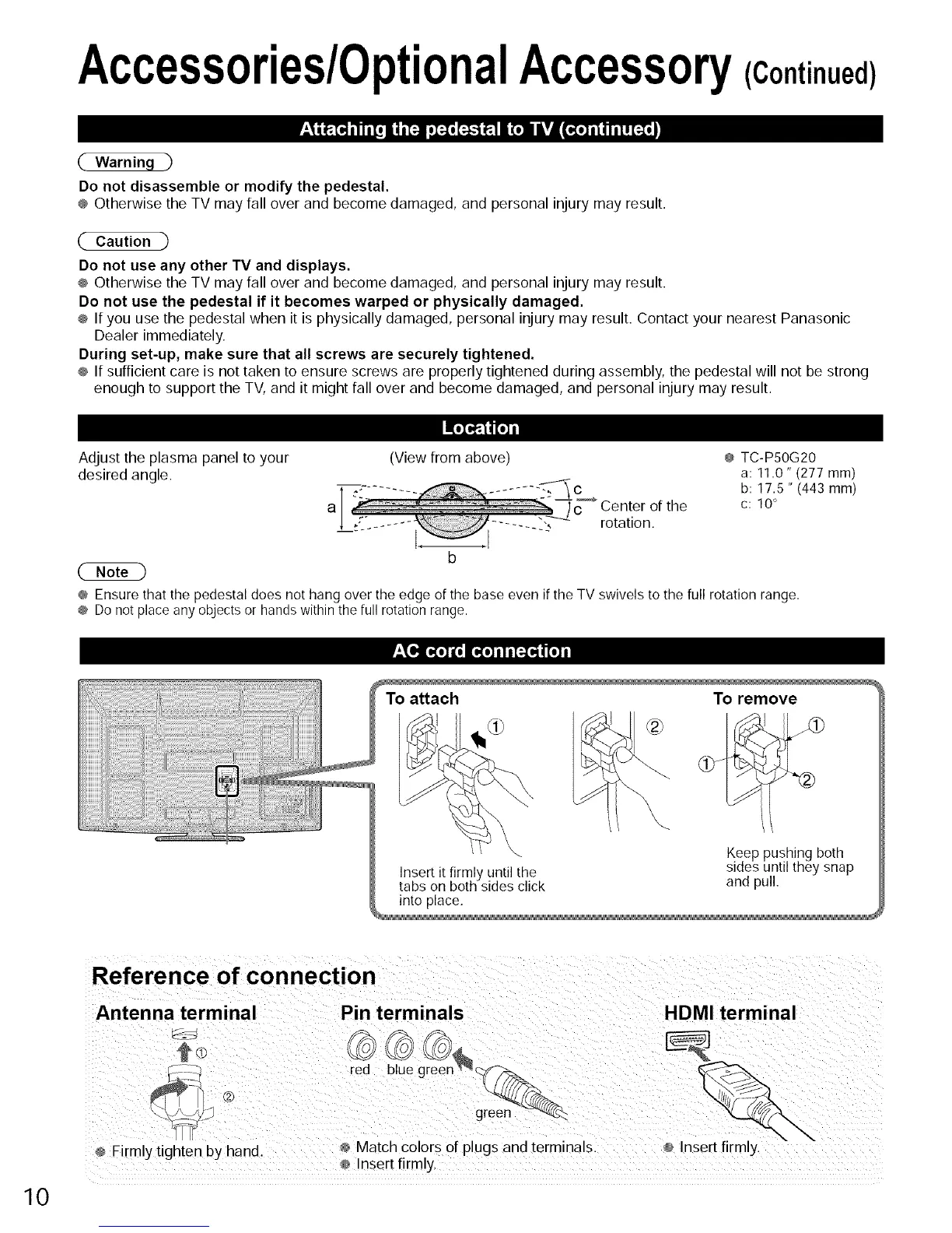 ® If you use the pedestal when it is physically damaged, personal injury may result. Contact your nearest Panasonic