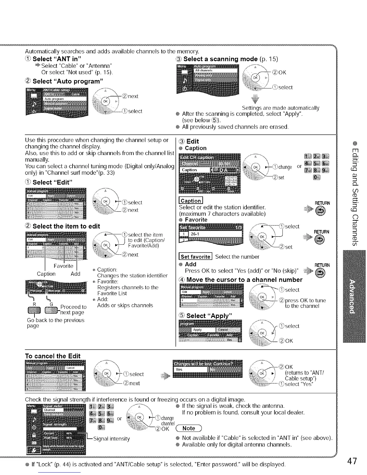 ® If "Lock" (p. 44) is activated and "ANT/Cable setup" is selected, "Enter password." will be displayed. 47