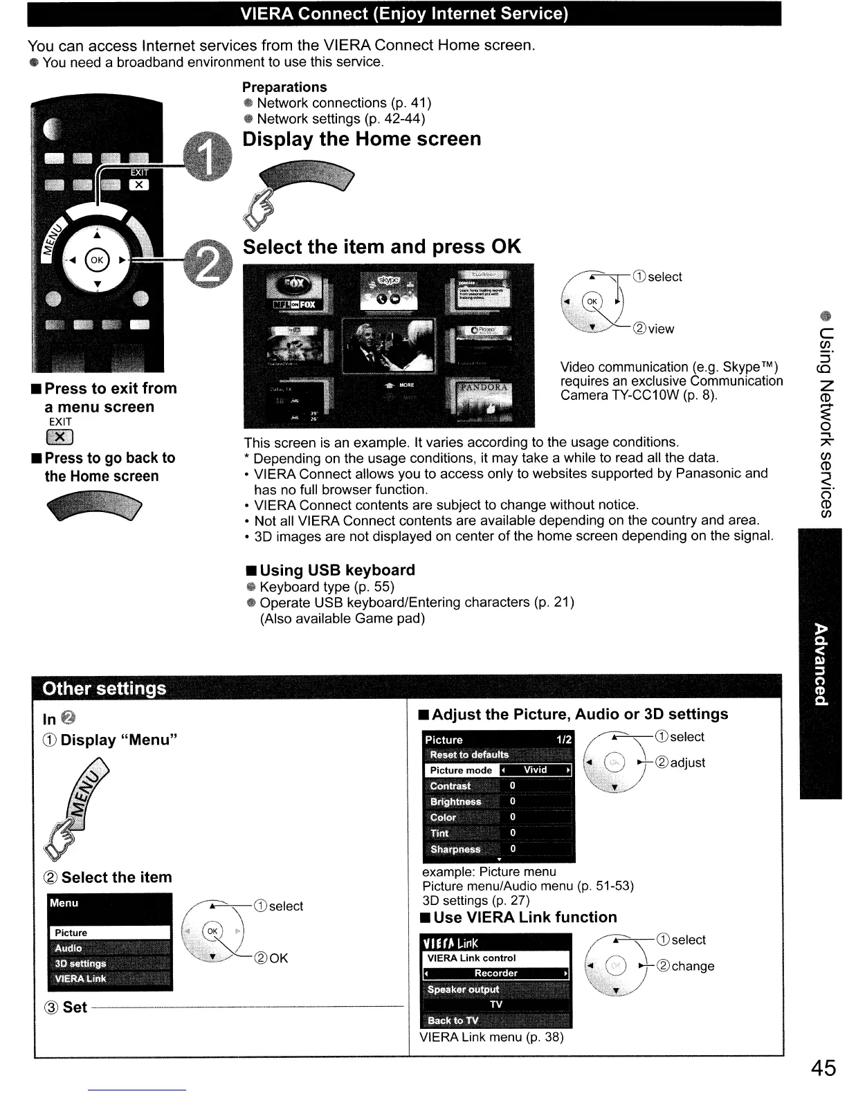 • VIERA Connect allows you to access only to websites supported by Panasonic and