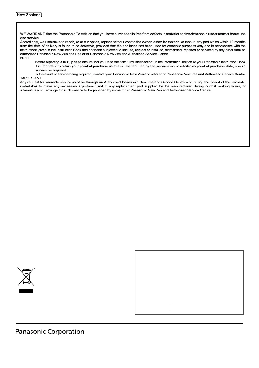Distributed in New Zealand by Panasonic New Zealand Limited