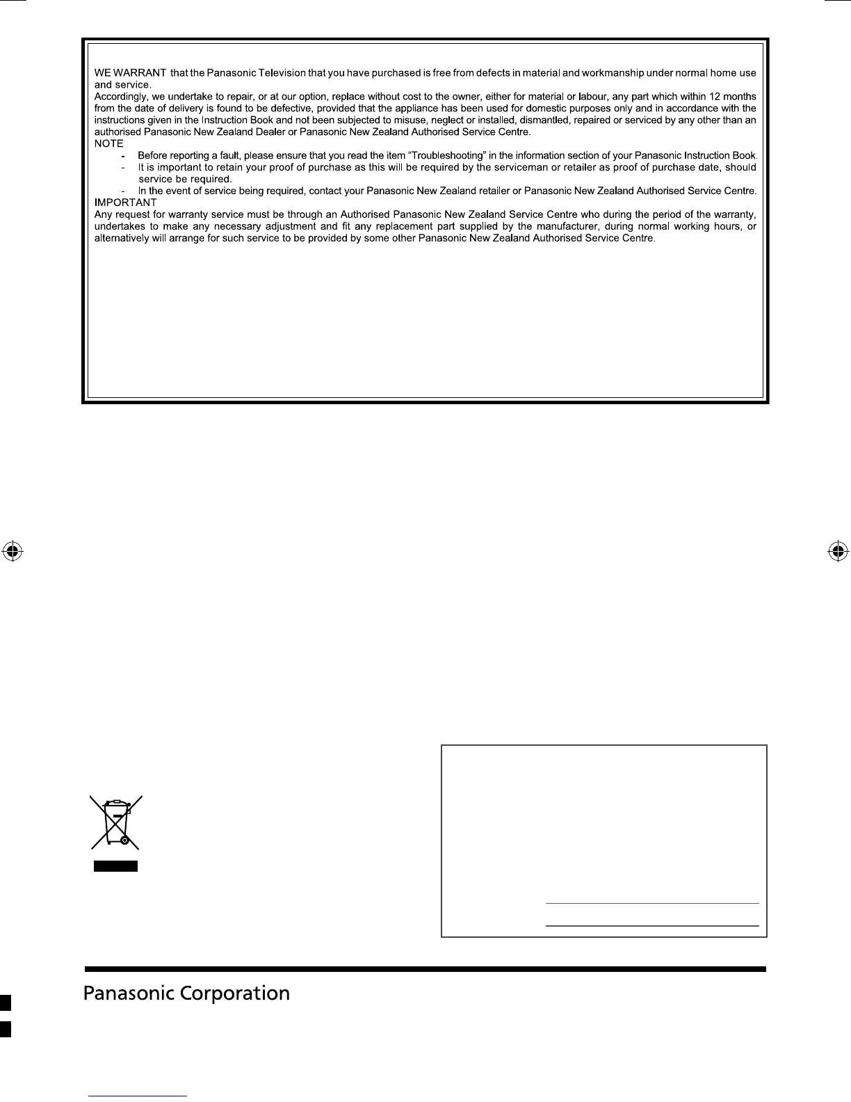 Distributed in New Zealand by Panasonic New Zealand Limited