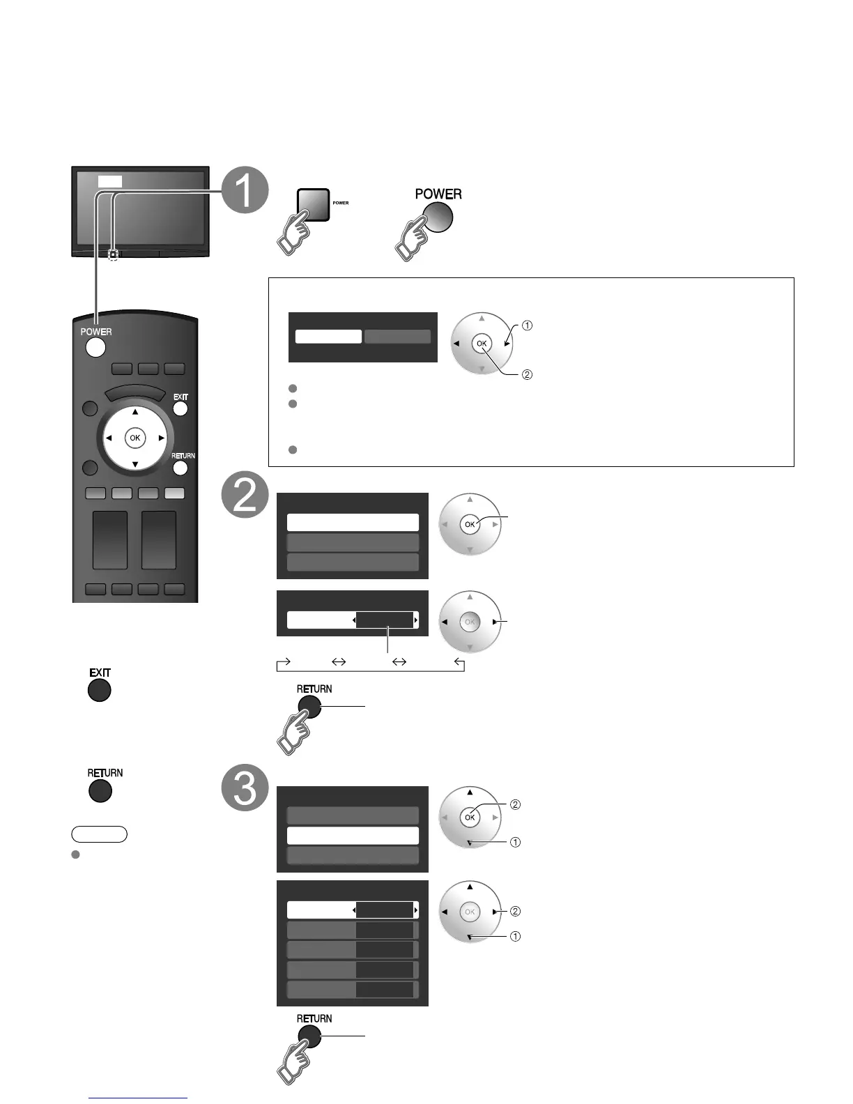 “First time setup” is displayed only when the TV is turned on for the first time after the power cord is