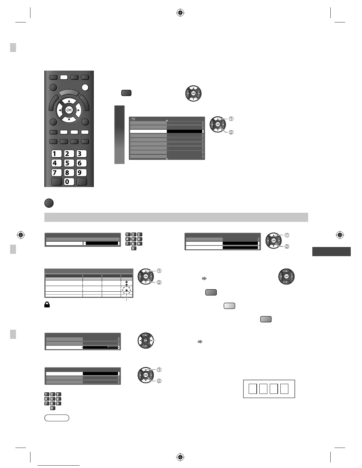 1 Enter the PIN number (4 digits) 2 Select [Child Lock List] or [Parental Rating]