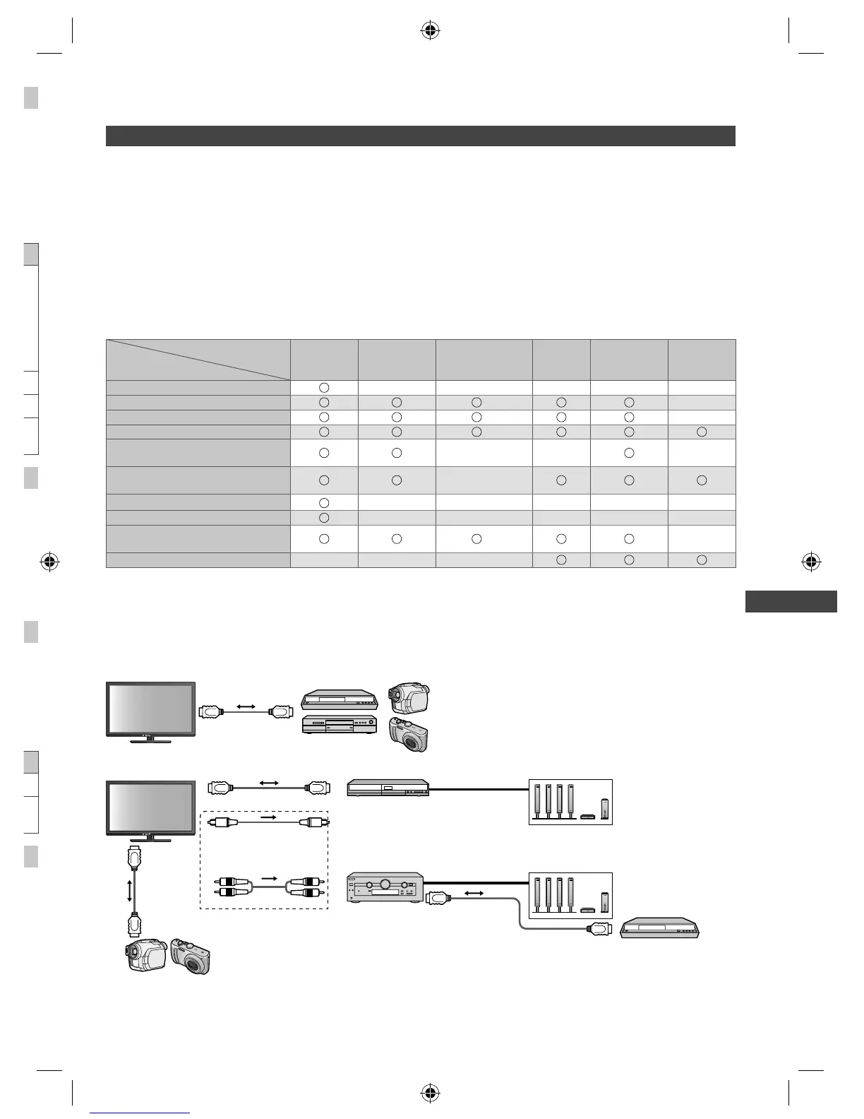 Connections to equipment with HDMI cable such as a DIGA Recorder, HD Video Camera, Player theatre, Amplifier,