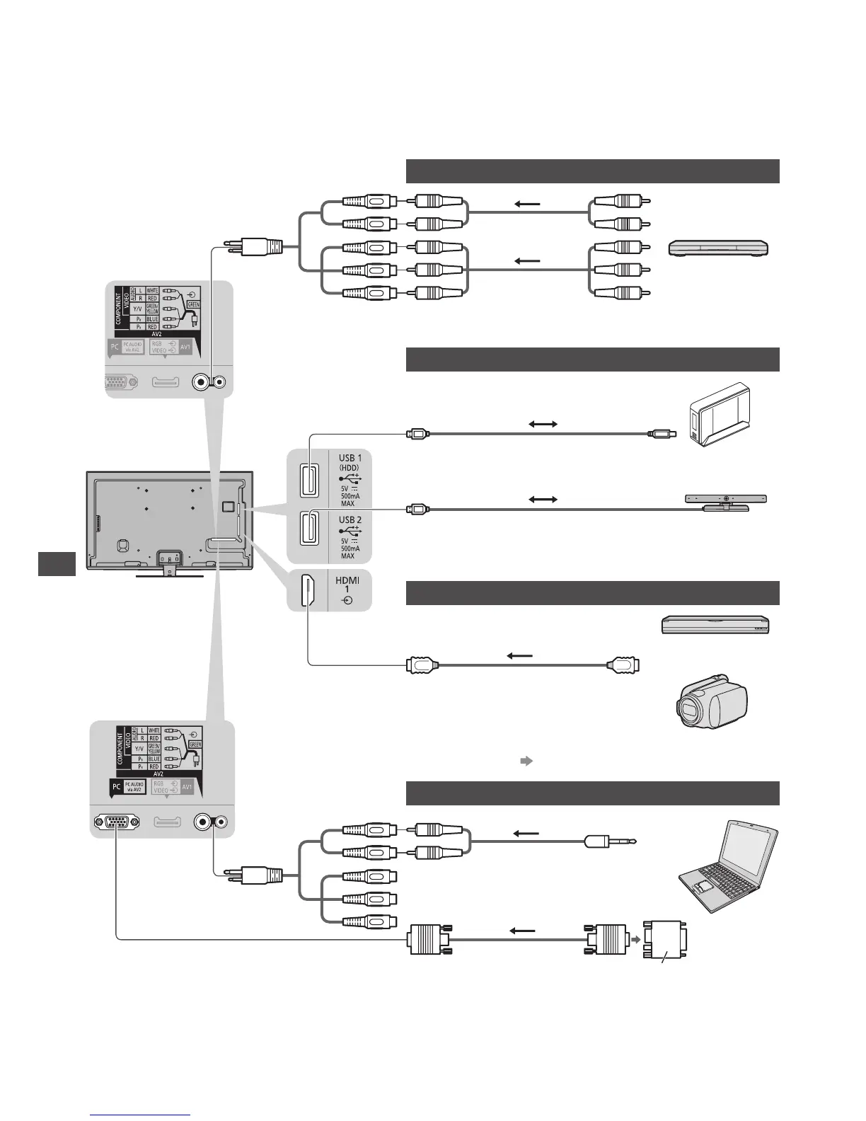 For other connections, consult the instructions for each piece of equipment, the basic connection (p. 13 - 15), the table