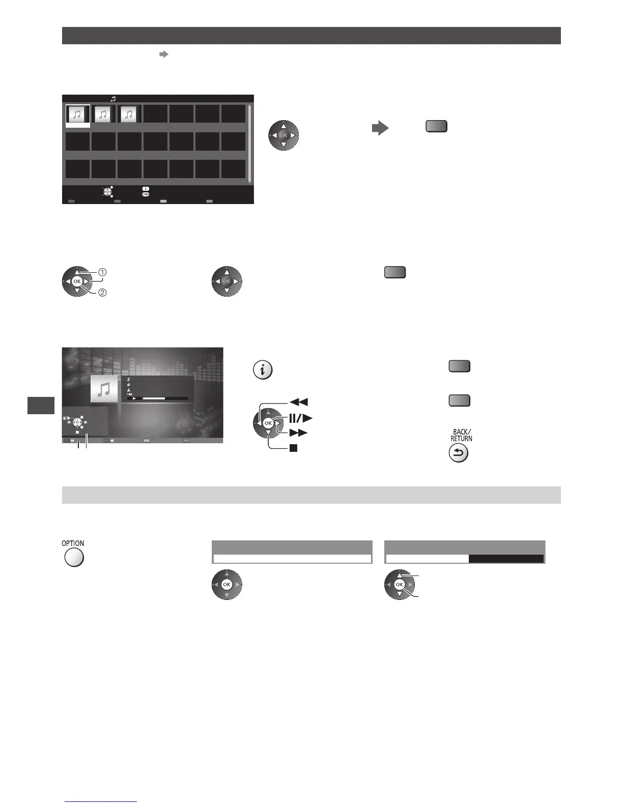 The thumbnail of music folders in the SD Card or USB Flash Memory will be displayed.