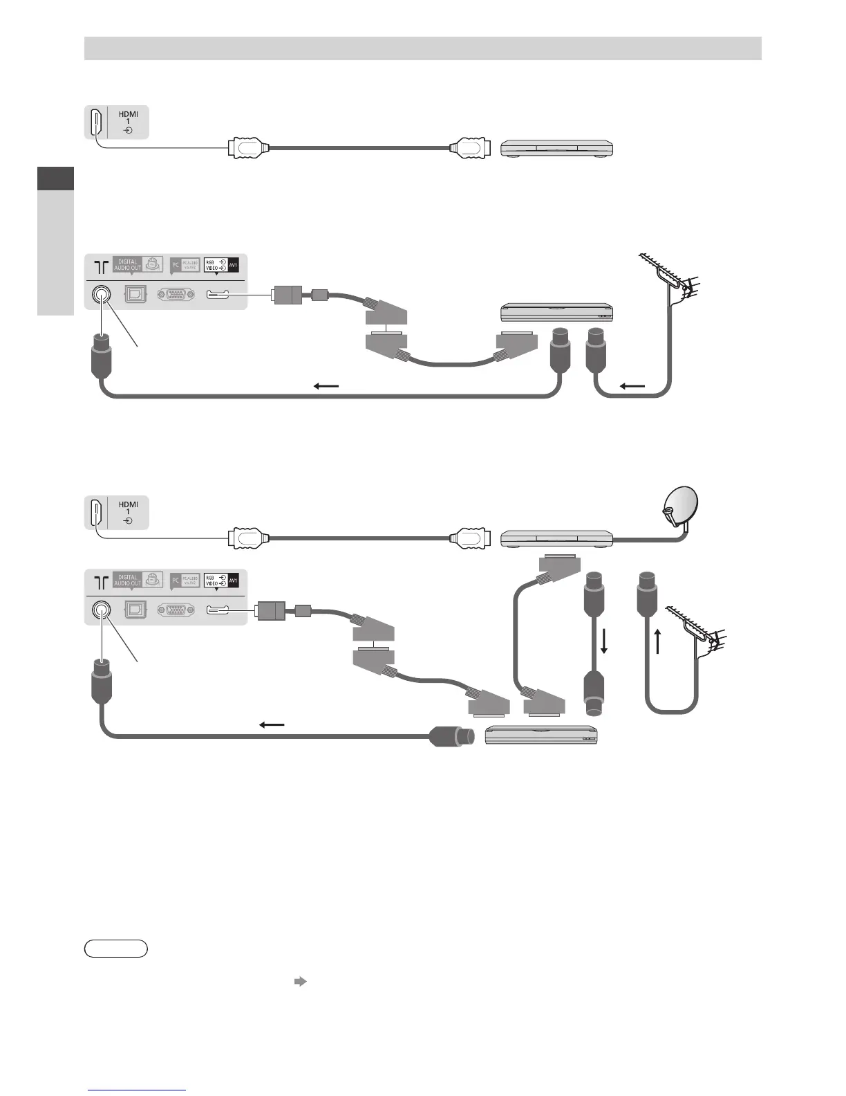 Connect to the TV’s AV1 for a DVD Recorder / VCR supporting Q-Link (p. 87).